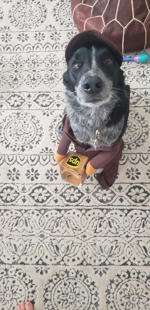 Windsor lived through 19 years of Halloween! Now we have granddogs! Azzy sure looks cute here as the UPS girl.