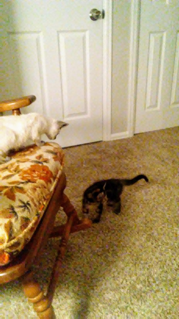 Fourteen, or so odd, years ago, we adopted several kittens over a two year period full knowing that one day we would lose several cats within a few years. We lost four of them this year, my sweet Frankie just a week ago. We have one old kitty left, our beloved Booboo, whom the children taught to come to Andrew’s room if he blasted Bob Marley. We have two five-year old kitties as well. Well, it’s a bit quiet around here when you are used to many more. The silence of winter approaches and we felt we needed a little life and a little fun around here. So off to the shelter we went on the first blustery day and adopted two adorable little girls.