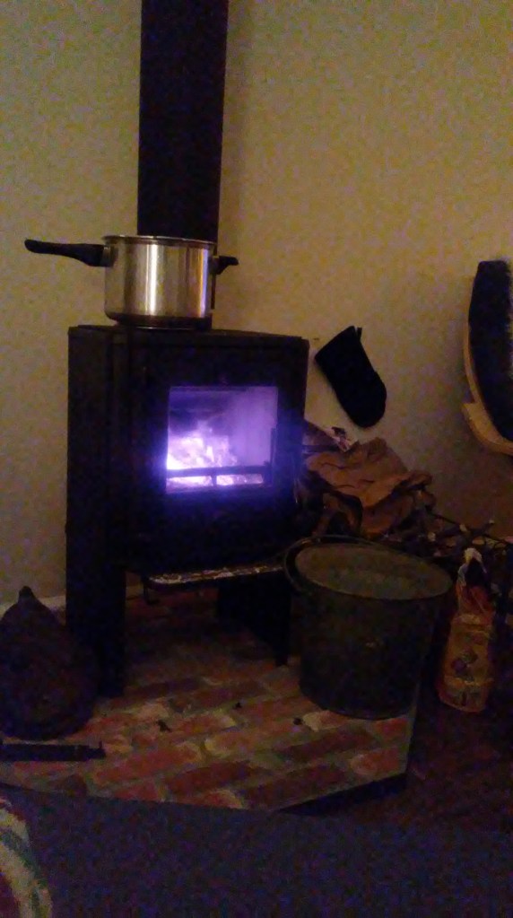 The wood stove has been puttering along beautifully over the past frigid few days and I am afraid that the wood is about run out and another two cords will not be arriving for another few weeks. We do have a furnace, but there is nothing quite like the warmth from a wood stove to really warm the bones.