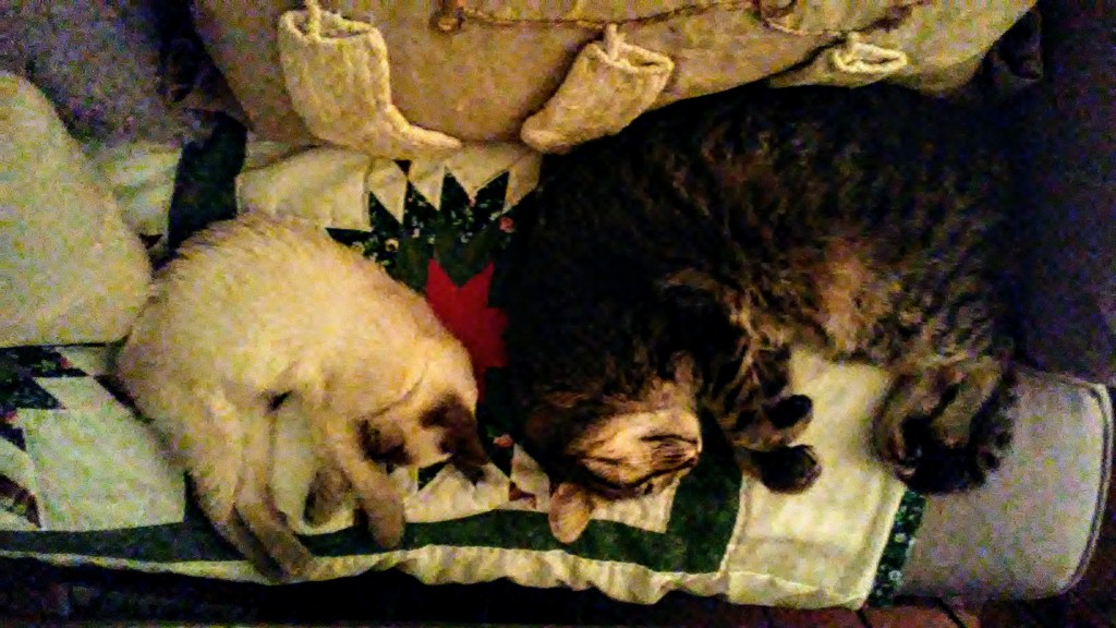 Blessed Yuletide cometh soon. The light returns in just two moons. This morn is cast a cheery rose across melting snowy pastures, as the dawn awakens the world here on my little homestead. And I am content before the fire with a cup of strong coffee and kittens playing nearby.