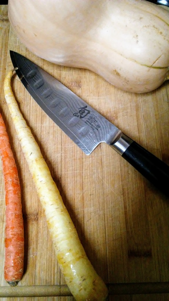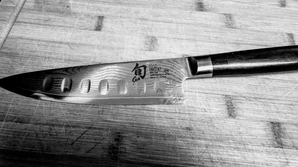 I received a very special Christmas gift from my husband. Jewelry, you might ask? Better. A chef’s knife. It is a beauty. And sharper than a lost sewing pin in the carpet. It will make cooking such a pleasure for me.