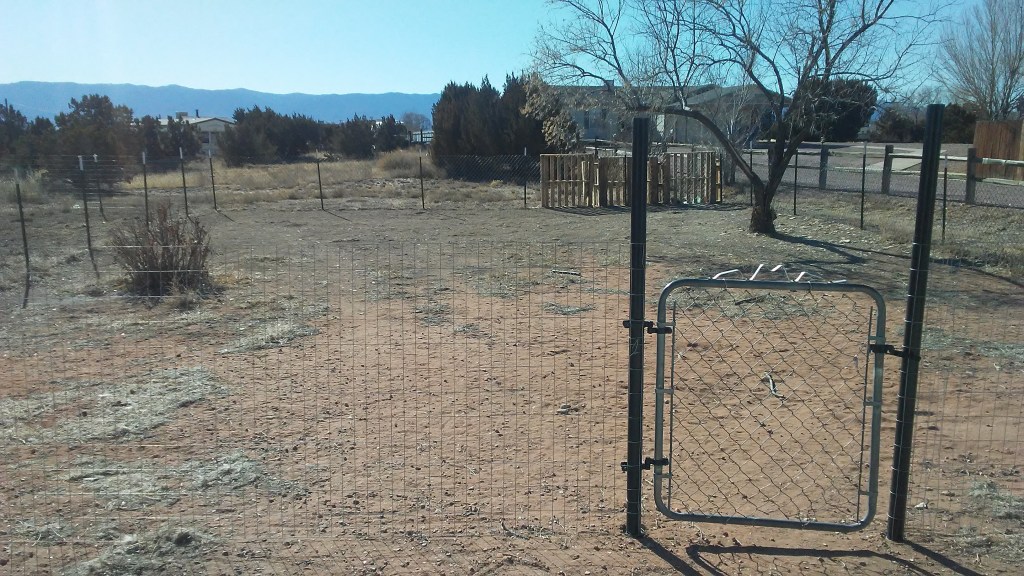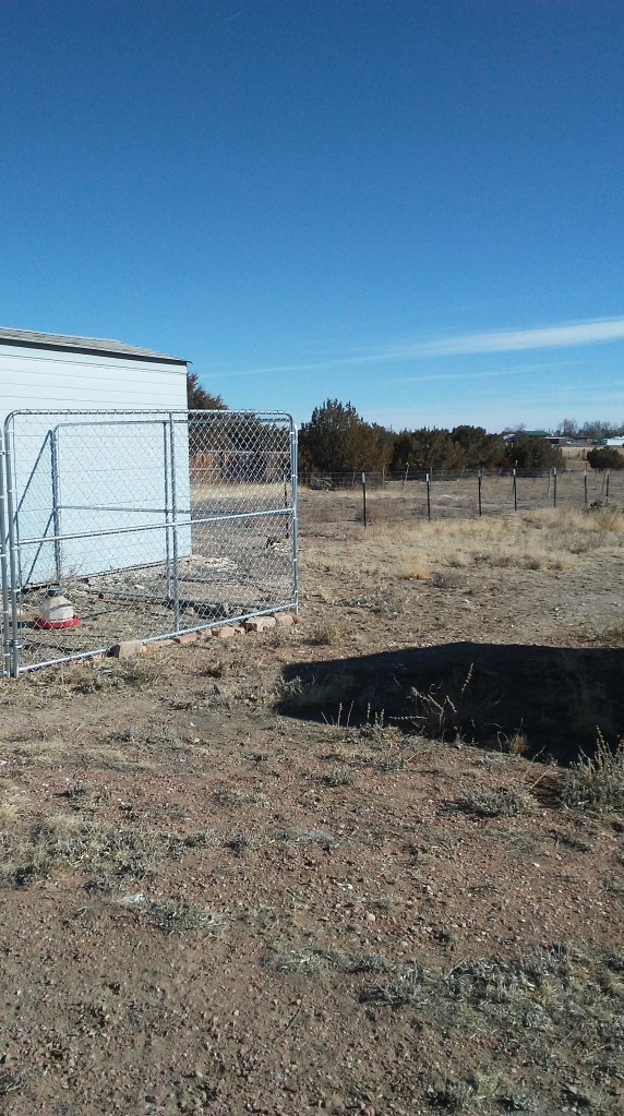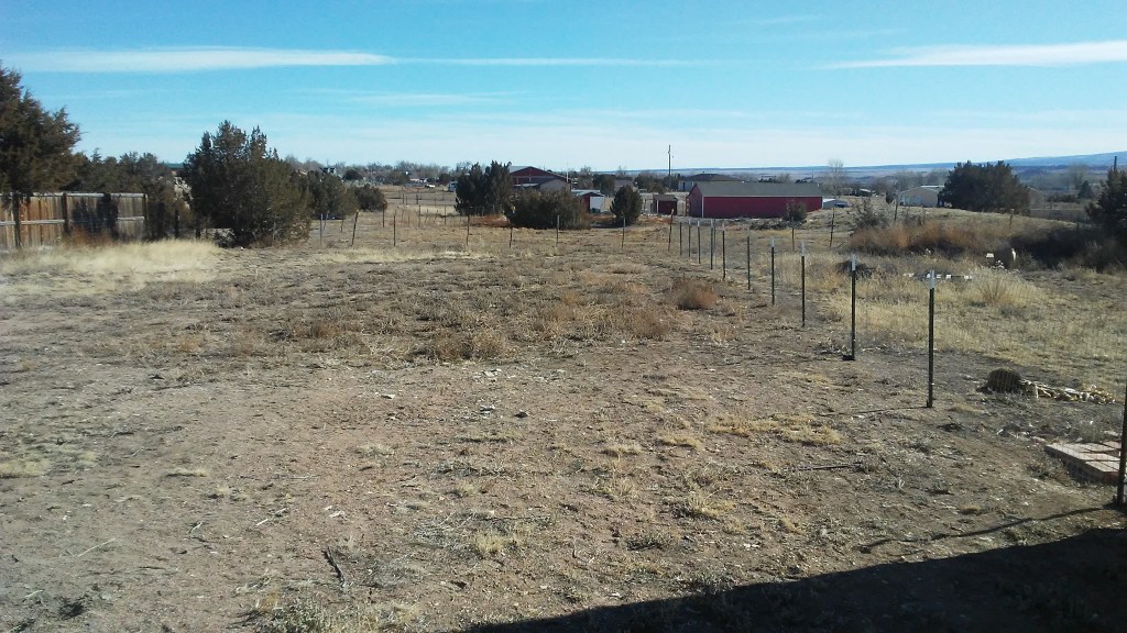 Next week’s task is to further separate a 30×30 area in the front pasture so that the chickens can have a bigger area. The front garden fence was intended to keep stray dogs out (they could jump the fence, I suppose, but usually a fence will dissuade dogs, and to keep cars out of the future garden. Folks see dirt and park wherever! Get off my imaginary garden! Fences keep some out and some in. A field fence easily manages that.
