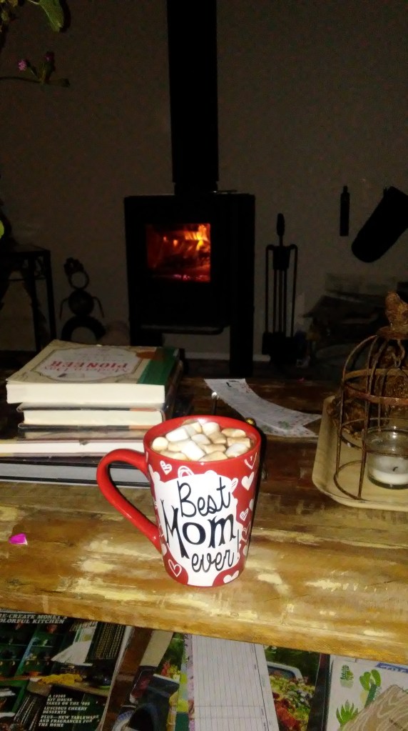 We sit together and chat, enjoy the fire with a hot drink and talk about our day. Blow out the oil lamps and the candles. And fall into bed sleepy and happy and content.