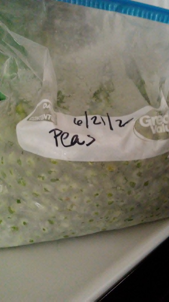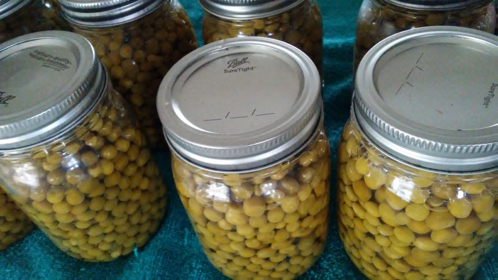 Over a bushel of peas took us a long time to shell and process BUT we ended up with over a gallon of frozen peas (click here for how-to) and 13 pints of delicious spring peas to enjoy all winter long.