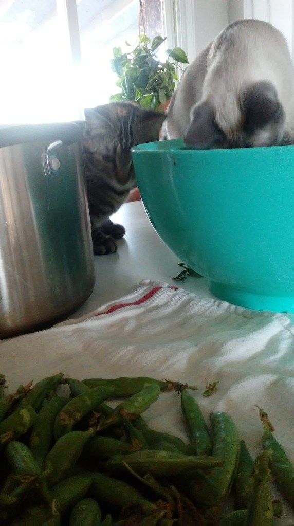 Things got more efficient after we began using a paring knife to slice down the seam of the pods to free the spring peas. “Everyone is getting a scheduled C-section!” Doug declared. It certainly made us faster as we shelled thirty-seven pounds of peas.
