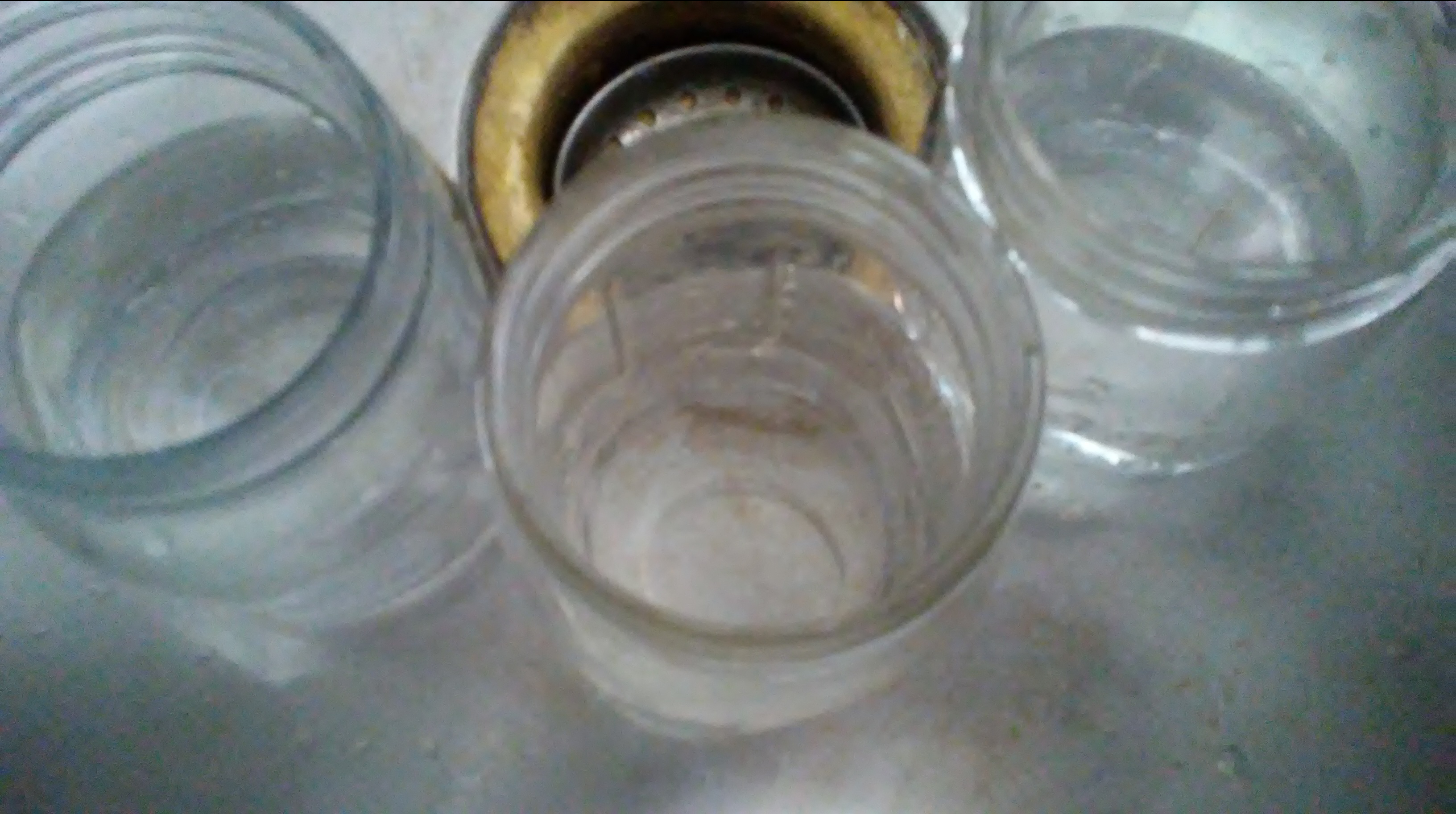 Use clean, pint-sized canning jars. Never mind with all that boiling and what have you, just line them up in the sink and pour a kettle of boiling water over and in the jars. The point of boiling the jars was to make sure they were clean and to heat them up so that they didn’t break in the canner. We are achieving the same thing with the kettle of water. Use new lids and pour boiling water over them as well.