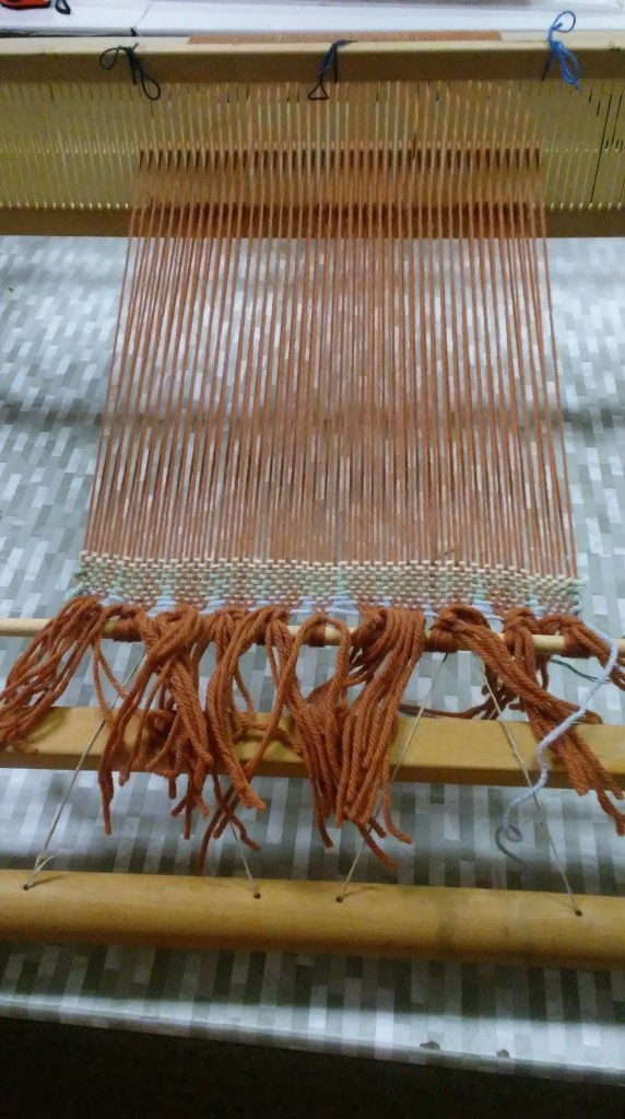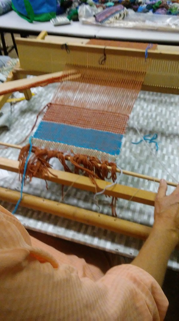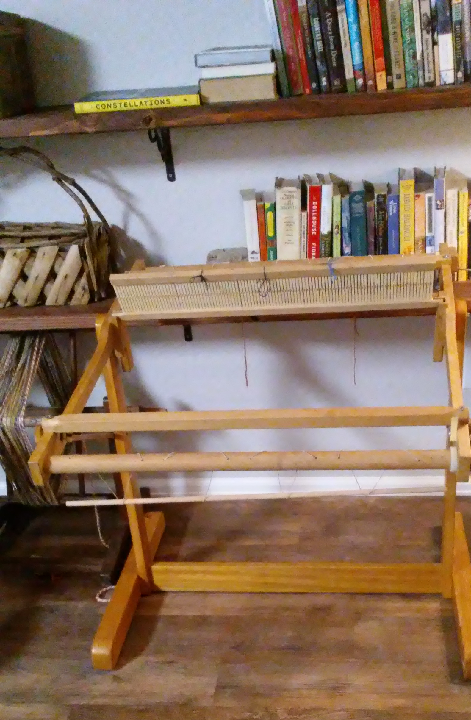 The loom and its parts have been with me for years now but I could not make any sense of any of it until yesterday when I took my first weaving class. What a great day! I learned what a heddle and shuttle was and how my loom works. I made a pretty, southwestern wall hanging that I finished last night and hung from an interesting stick. I cannot wait to start the next project!