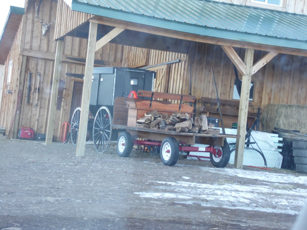Ruth and Joel’s house was cozy and warm. The sun shone through the large windows looking out on the cold mountains just yonder, the wood stove stood guard against the chill, in front of a wood cabin wall. Their children played with simple toys and brought me books to read them. Ruth had sewing waiting for her- a task she dislikes despite her very fancy sewing machine plugged into the outlet that is supplied by propane. She brought us out sweet rolls and a drink. We talked of her husband’s job, canning, her makeshift root cellar under the house, and about the animals. It was really no different- to my surprise- than if you visited my farm some January morn. Except that her husband rode his bike or hitched up the horses to go to work, whereas my husband starts the Fiat, which is much smaller than Joel’s buggy.