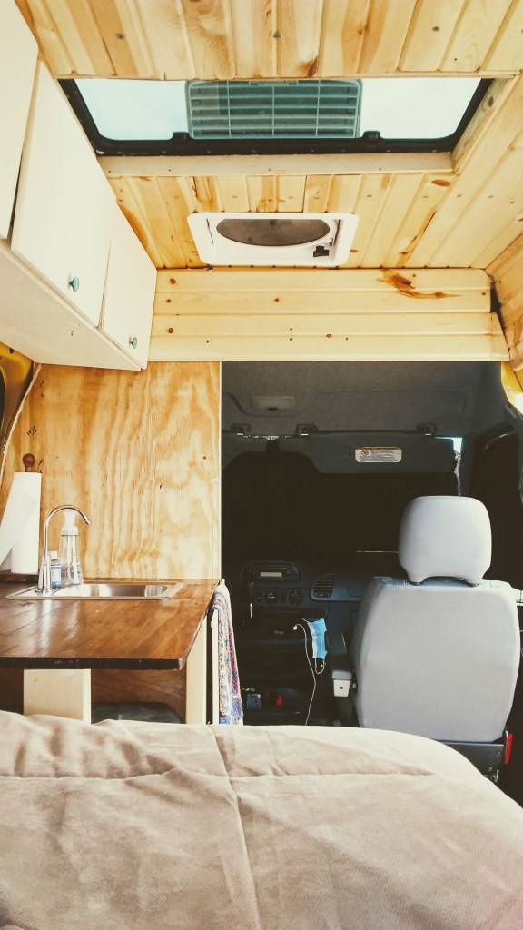 Annie and her mother beautified the interior of the van with sweet-smelling pine planks and faux wood floors.