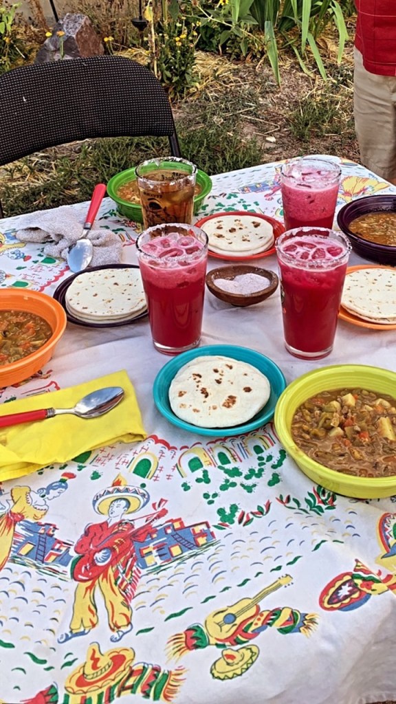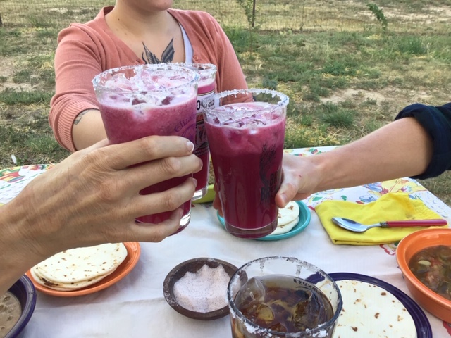 A simple affair is also easy to pull off. Put on a pot of soup. I wanted to make my woofers (farm interns) a truly Colorado meal, so I made them green chile, heated some tortillas on the gas stove, juiced some prickly pears and made the most delicious margaritas ever. The point of a dinner party is to come together as friends and community. Joining together over food is a great way to keep relationships alive and well. It adds such sweetness to life.