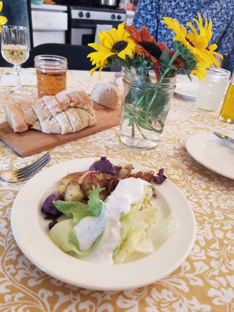 Five records were stacked and ready to start playing as soon as the first guest pulled up. The table was set. Small wine goblets brought out for the occasion. Fresh sunflowers filled canning jars. The dinner party was about to begin.