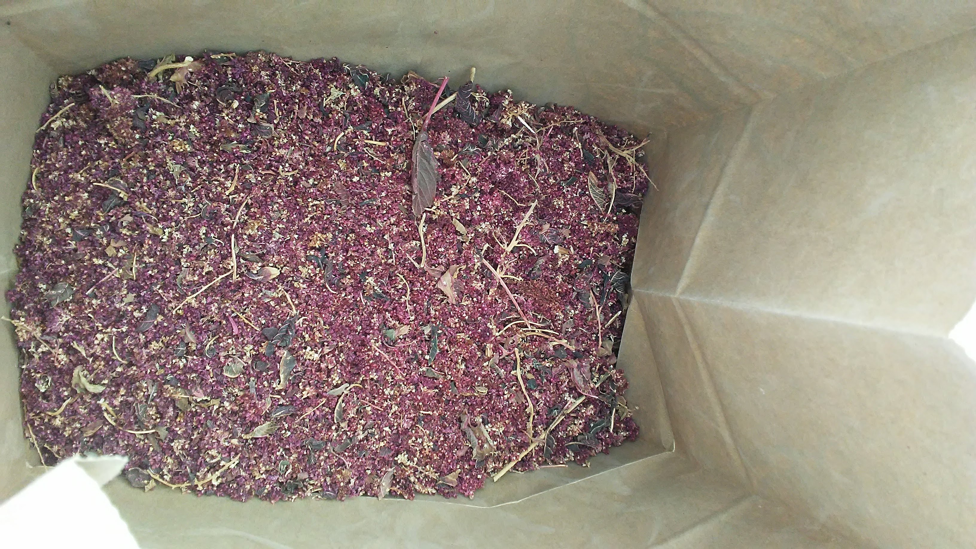 This week the heads had fallen, drooping solemnly on the ground, great shocks of multicolored tops told me it was time. I clipped the tops into an open paper shopping bag. Using gloves, I crushed the heads and stripped the stalks.