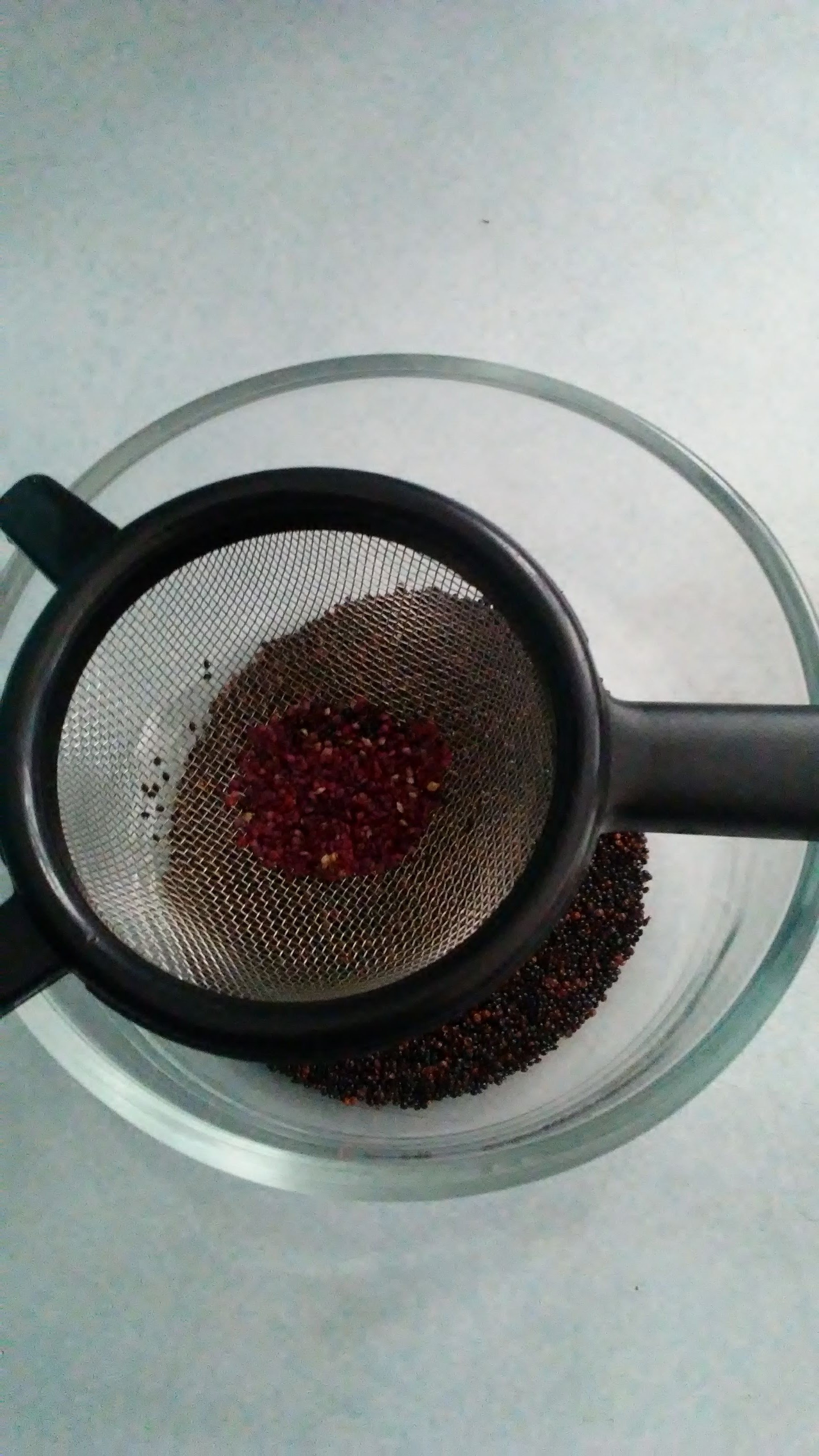I then poured the contents into a large sieve and that worked better to pull the contents through, throwing out the larger pieces of chaff.