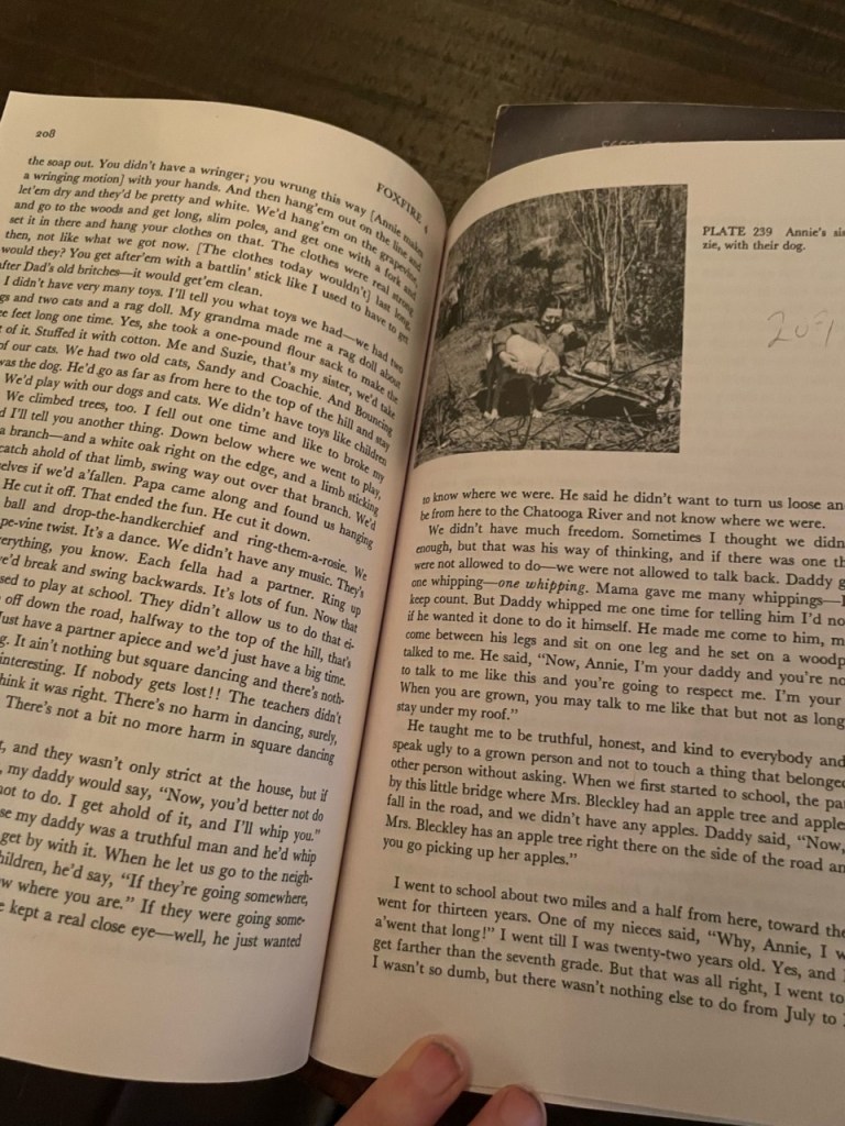 A student of mine gave me a copy of the first Foxfire book years ago. What a gift! I ended up ordering the whole series because that type of wisdom and writing could be gone in a generation.