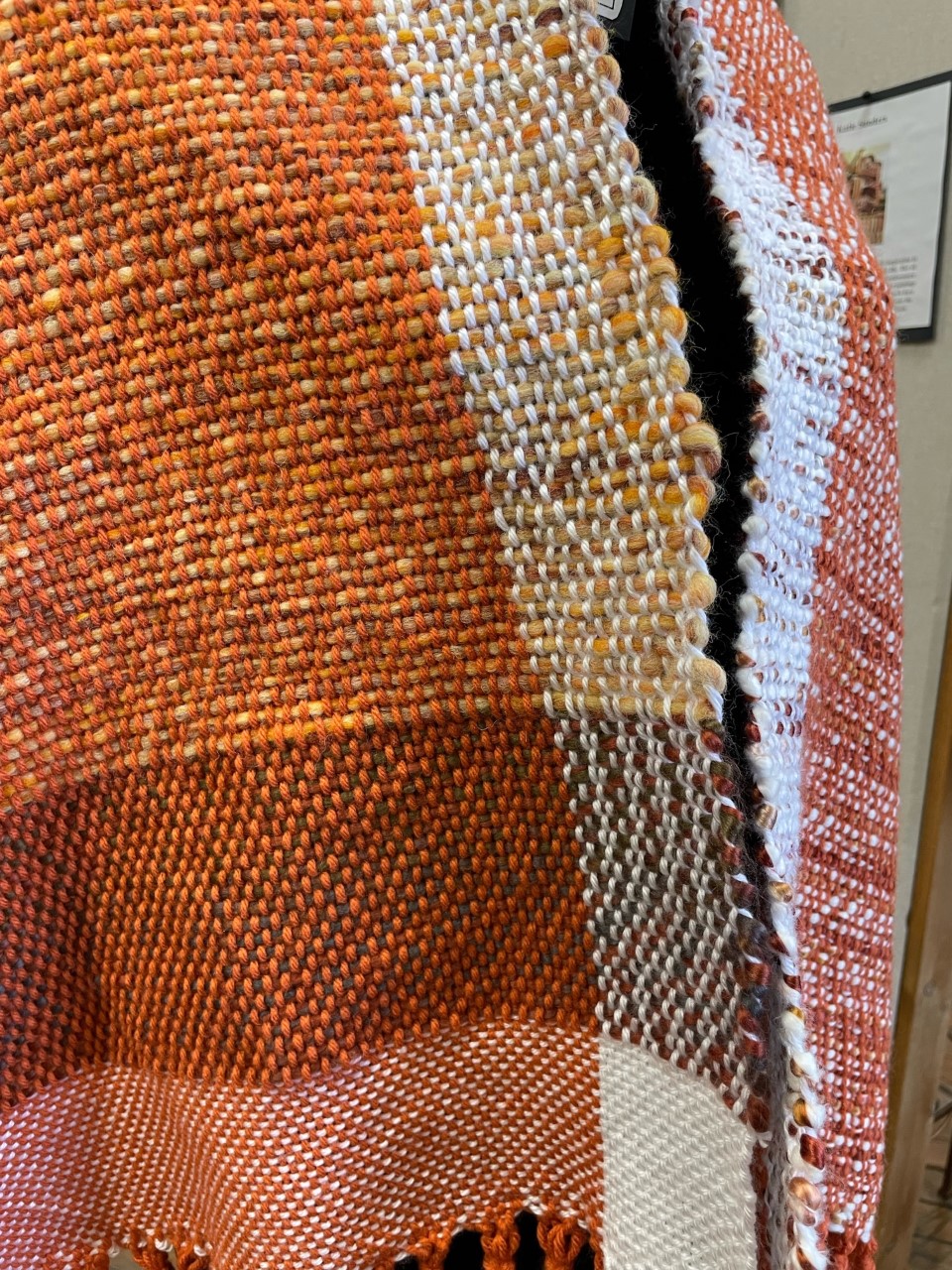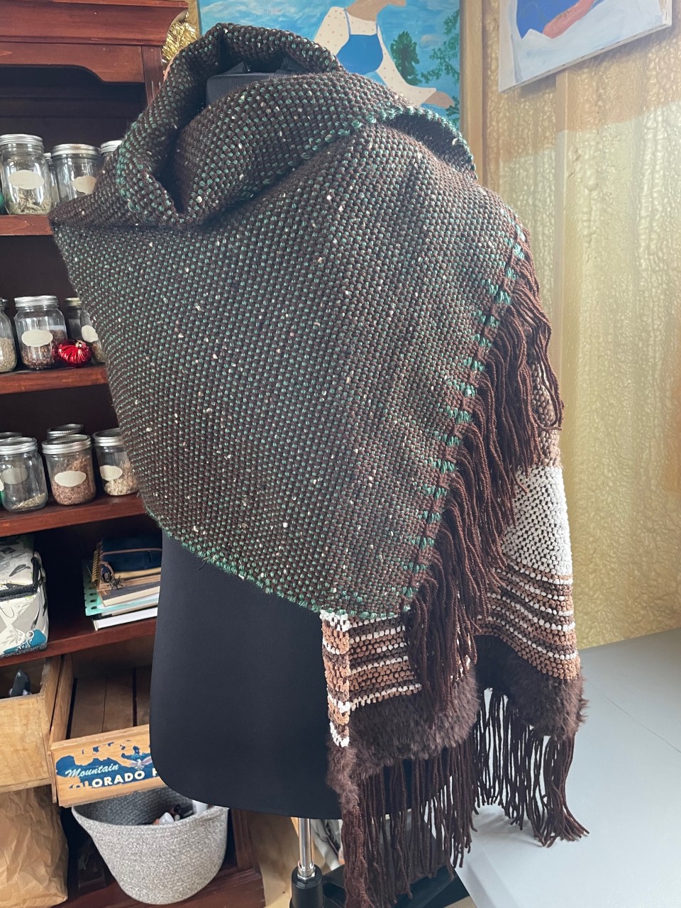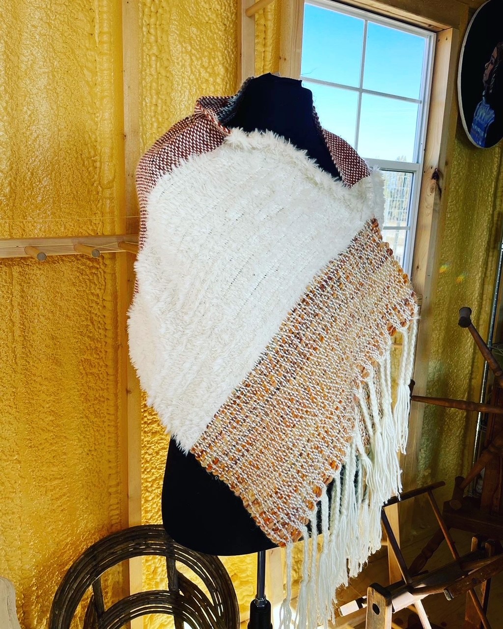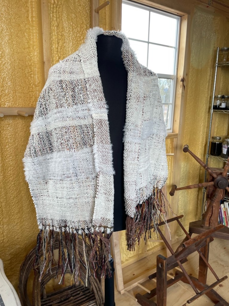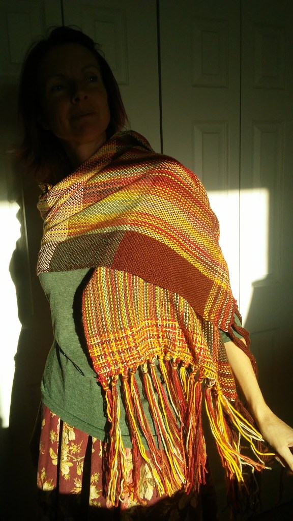 My god, I love how the shuttle feels swishing between the warp threads, and how the colors come together. I love texture and I love seeing how a shawl comes out. I may be the creator, but as with all art, it becomes itself and I get excited when I unroll the shawl from the loom to see what it has transformed into.