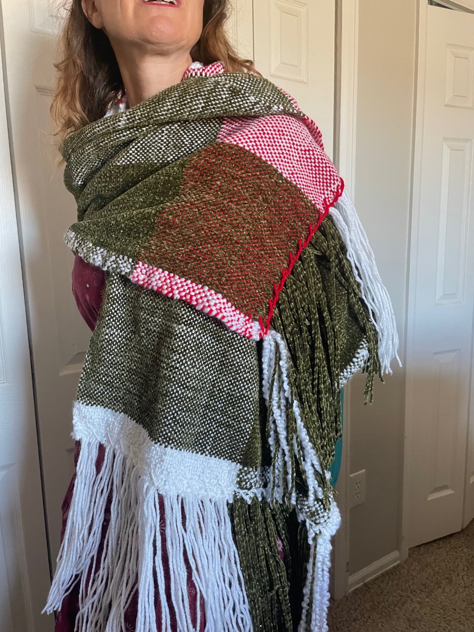 I love your shawls. I actually love ALL of your creativity. You’ve been an inspiration to me in so many ways. I really like the silver and turquoise necklace you’re wearing in the picture. Love ya Rod