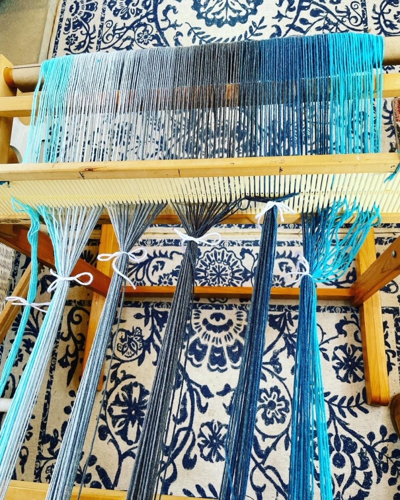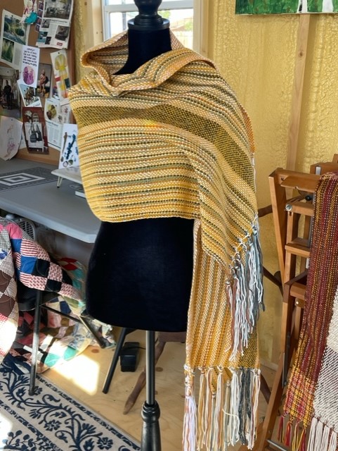 Lisa could not have known what a powerful gift she had given me. I have woven over a hundred shawls to date. As I warped on a gorgeous variegated blue and grey yarn yesterday in my studio, a sense of peace came over me as the methodical and poetical motions set in. Weaving is like a heartbeat, rhythmic and serene. Same with painting. Same with sewing. Creating is what completes a life for an artist. I am so blessed to be able to make time to practice art.