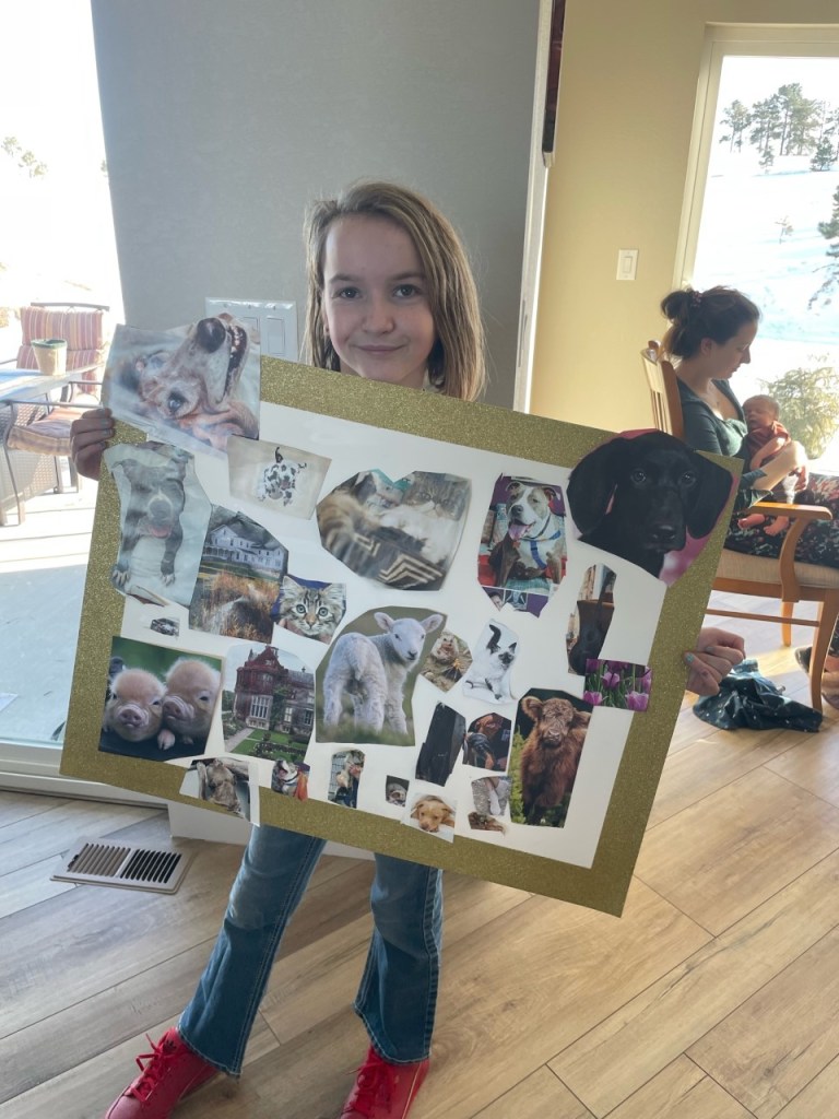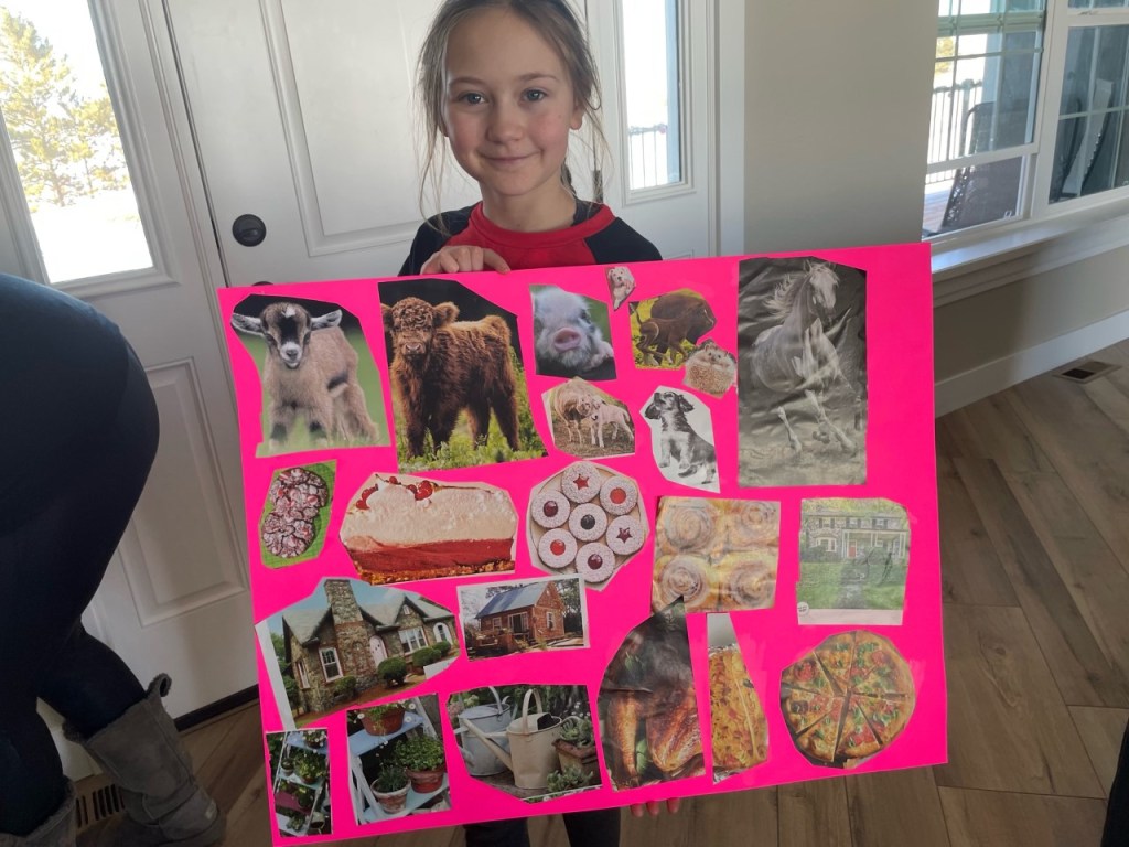 My granddaughter, Maryjane, and her bestie, Chase, always participate before running off to play. Their boards are great fun to look at! It is a good lesson to show them how they can create their own future, gather with other women, make art, and have fun!