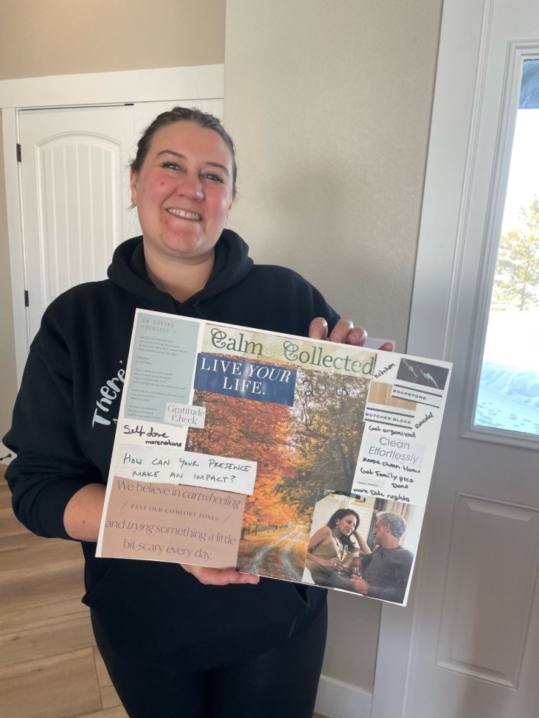 Doug came to visit and hold his new grandson (we are SO in love with baby Lochlan!), and Shyanne’s husband, Jacob, came in and out of the garage to visit. The men, knowing how powerful these boards are to manifest a future, always come over at the end to look at them to see what is in their future! (Last year, Shyanne put “baby” on hers real small, but big enough for the universe to see it!) Nearly everything on them always comes to fruition.