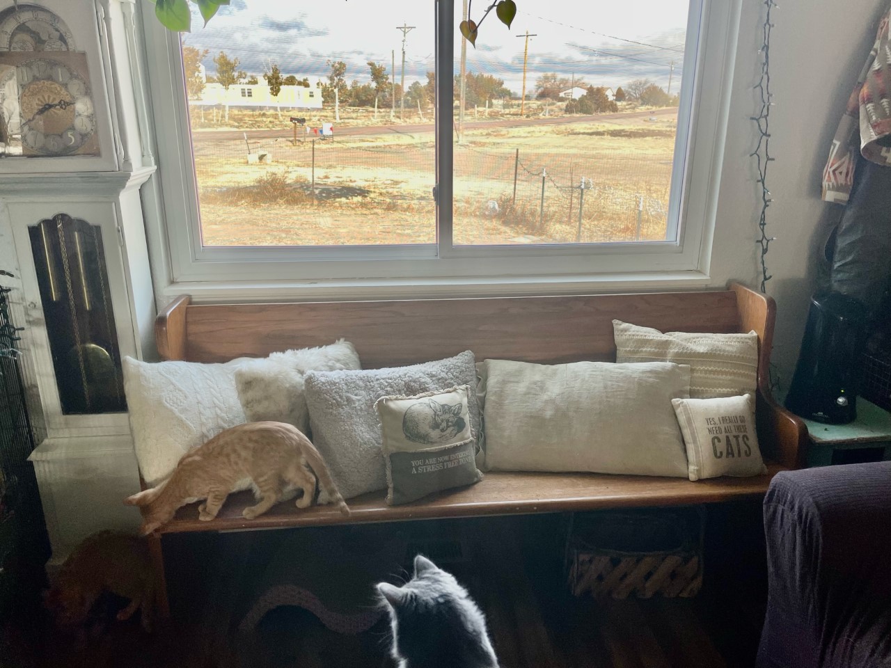A fresh coat of white paint started the whole thing. I shared with you my kitchen and shelves redo last week. My kitchen, dining, and living room are all one open room. It is not a big space; my whole house (3 beds, 2 baths) comes in under 1200 square feet. Add to that ten indoor animals and we need to harness some creativity (and manifest a maid)!