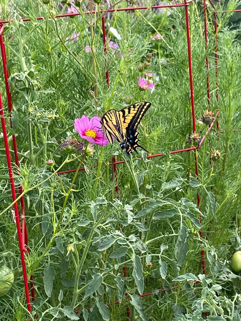 This fellow is a black swallowtail butterfly caterpillar. He loves dill and I always grow some for them. Look how amazing he is!