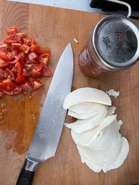 Mix well then knead for 5 minutes. Cover and let sit for 10 minutes while you prepare the toppings.