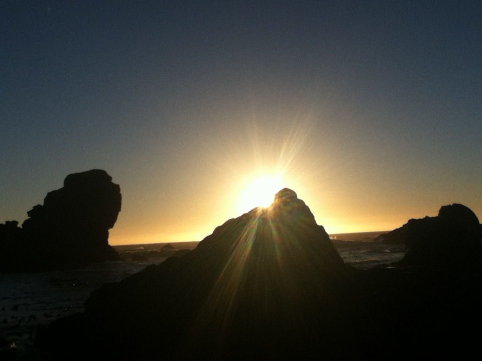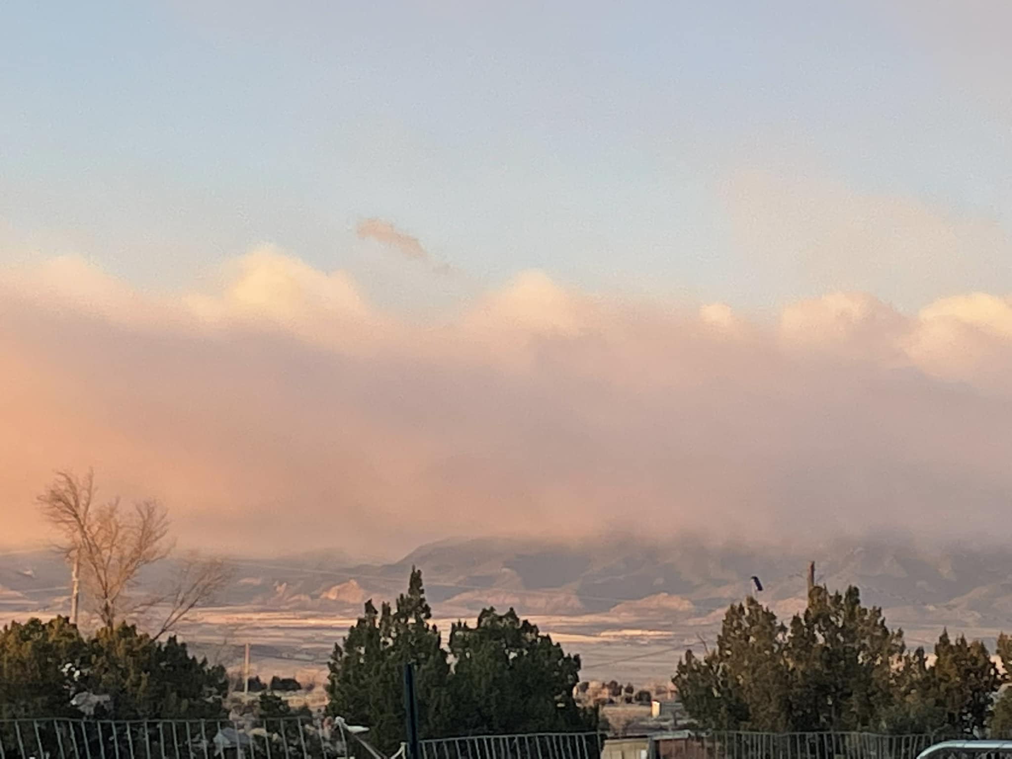 The sun going down behind the mountains, shooting wild paint colors across the western sky.