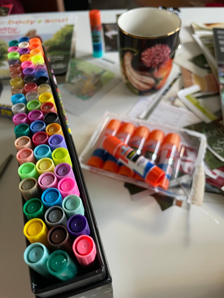 What I find interesting is that our respective boards always end up having similar elements. Everyone wants to be healthier, have closer families, to create, and to be outdoors. We all want some money and to be happy. We are all friends on this planet. We all want the same things, and we want the best for each other. It is a glorious part of life to be able to gather with others and share a little fun and support. Simply by asking, “Please pass the glue.”