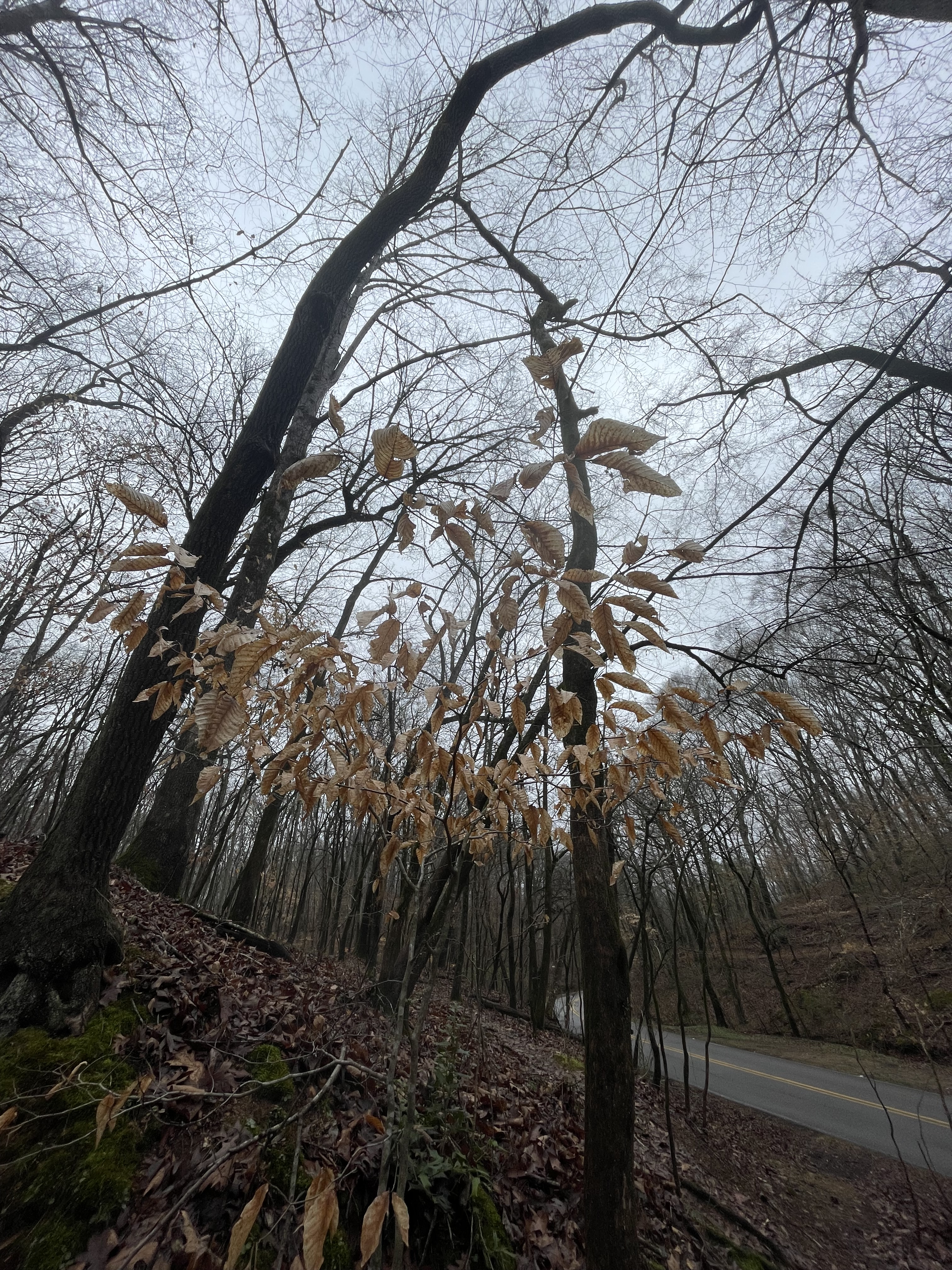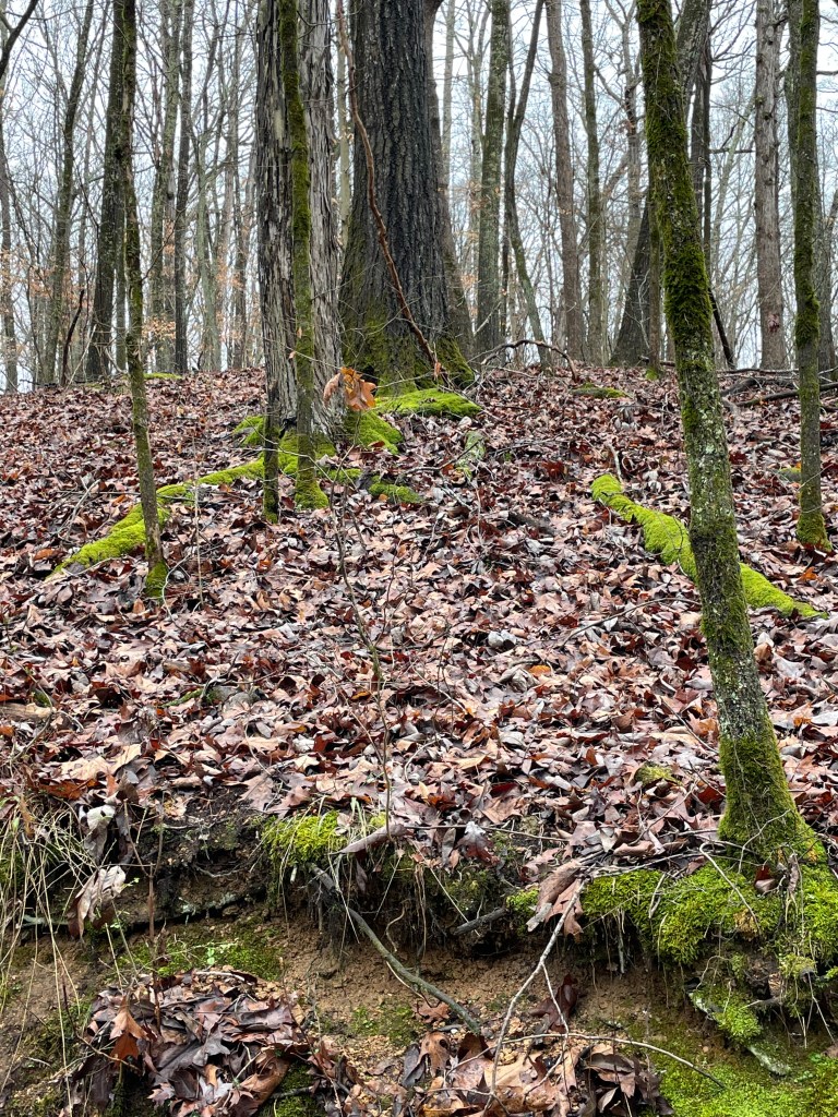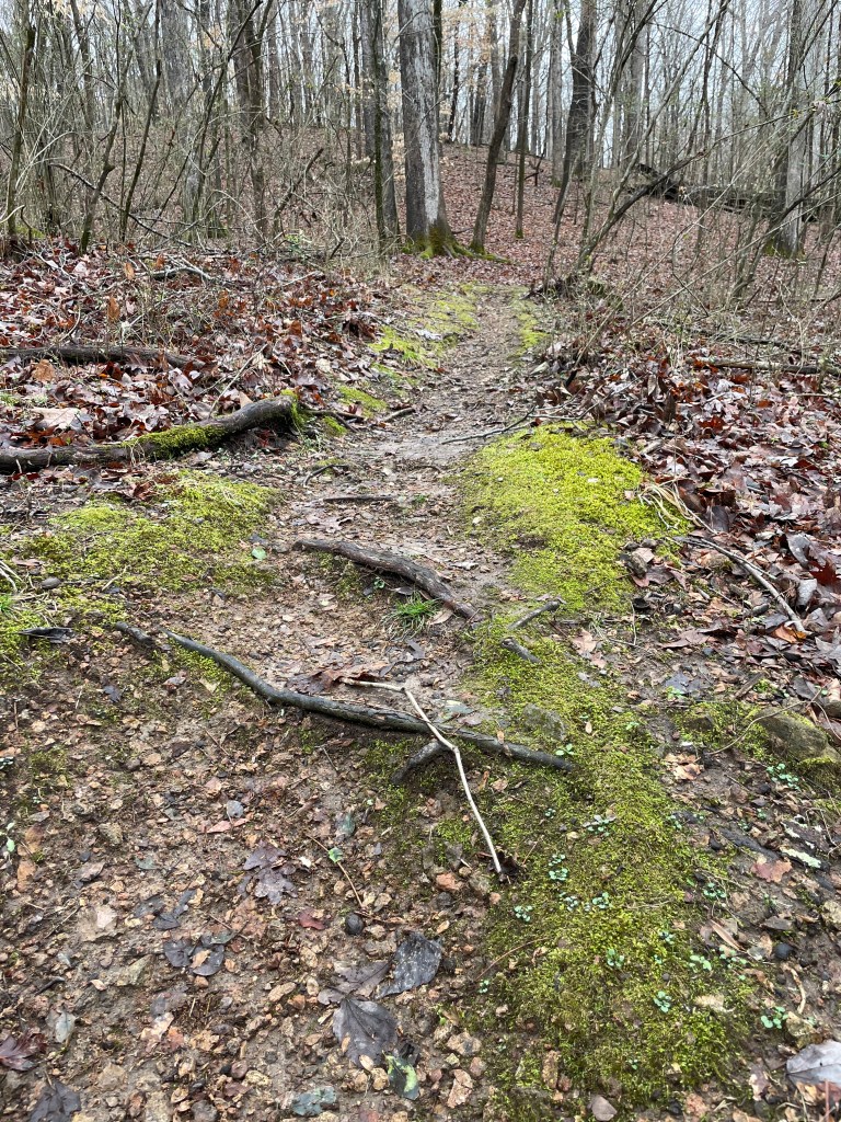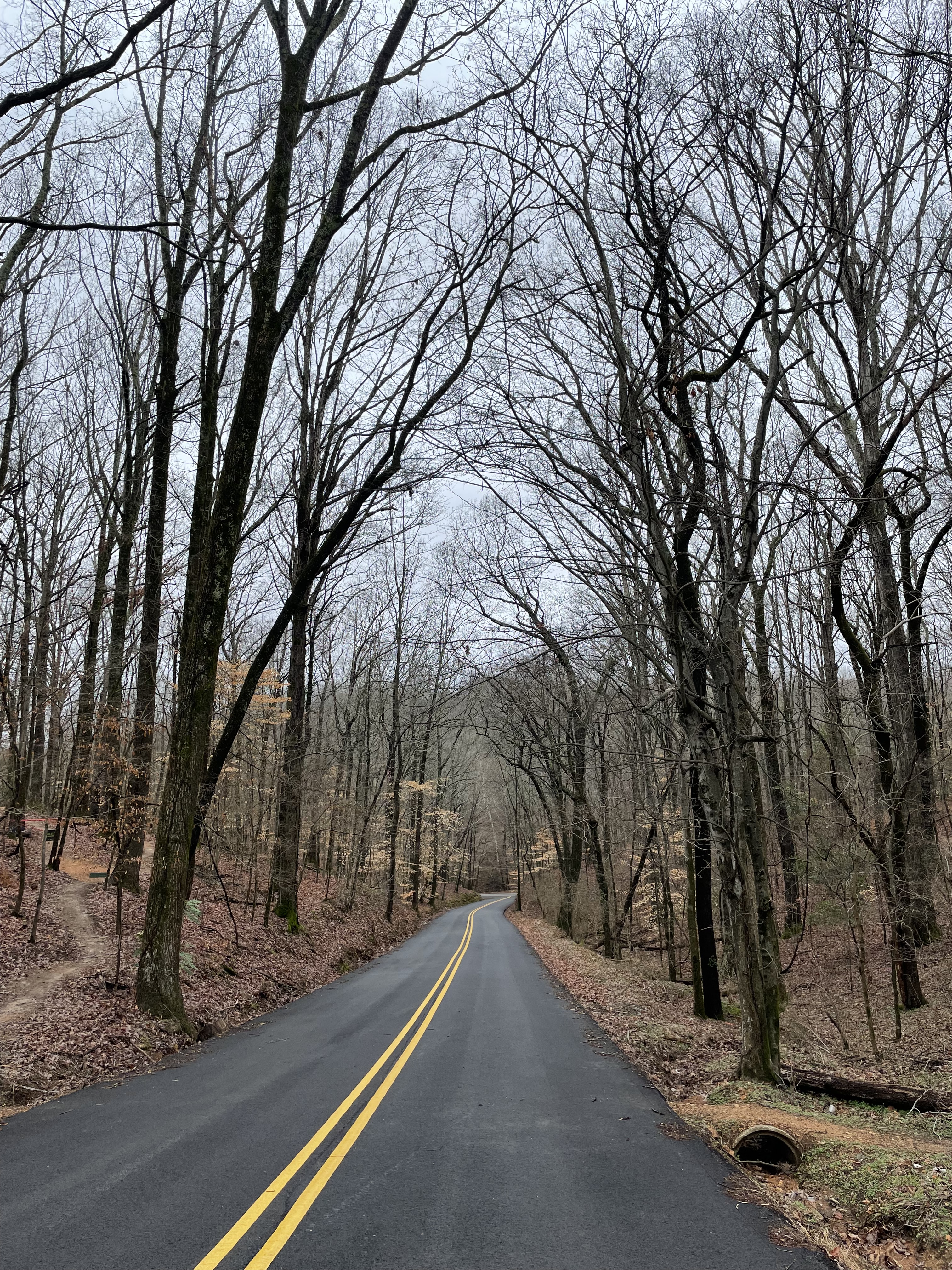 We walk in silence down the dark gravel road that cuts through the trees, autumn leaves, mosses, and limestone edges. The colors intense against the grey skies between rain showers.