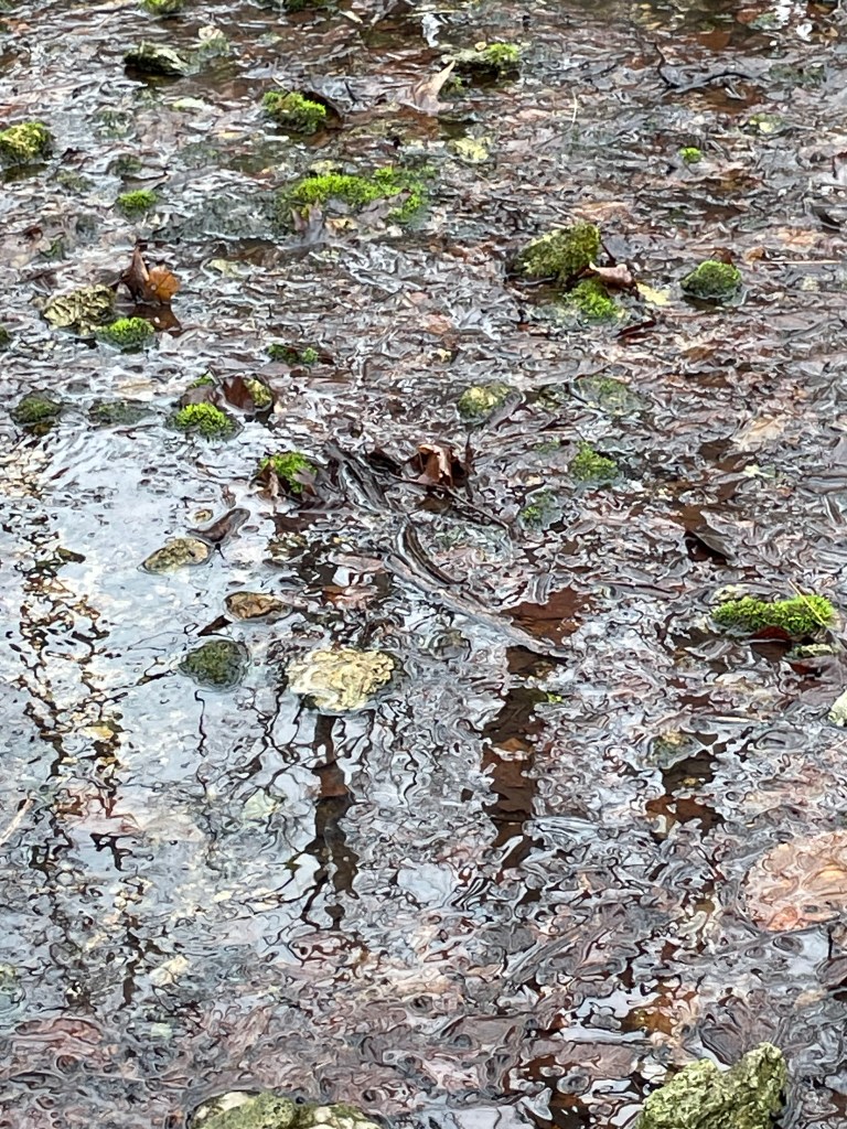 Then the glowing ribbons of moss call me back to the forest. The stream laughs as it rolls over stones. I smile with it. One can almost see the fairies dancing along the edges. My grandmother would have loved it here.