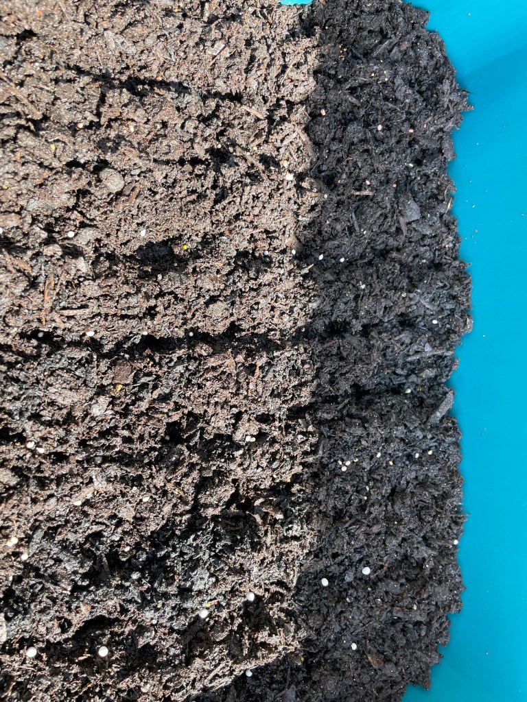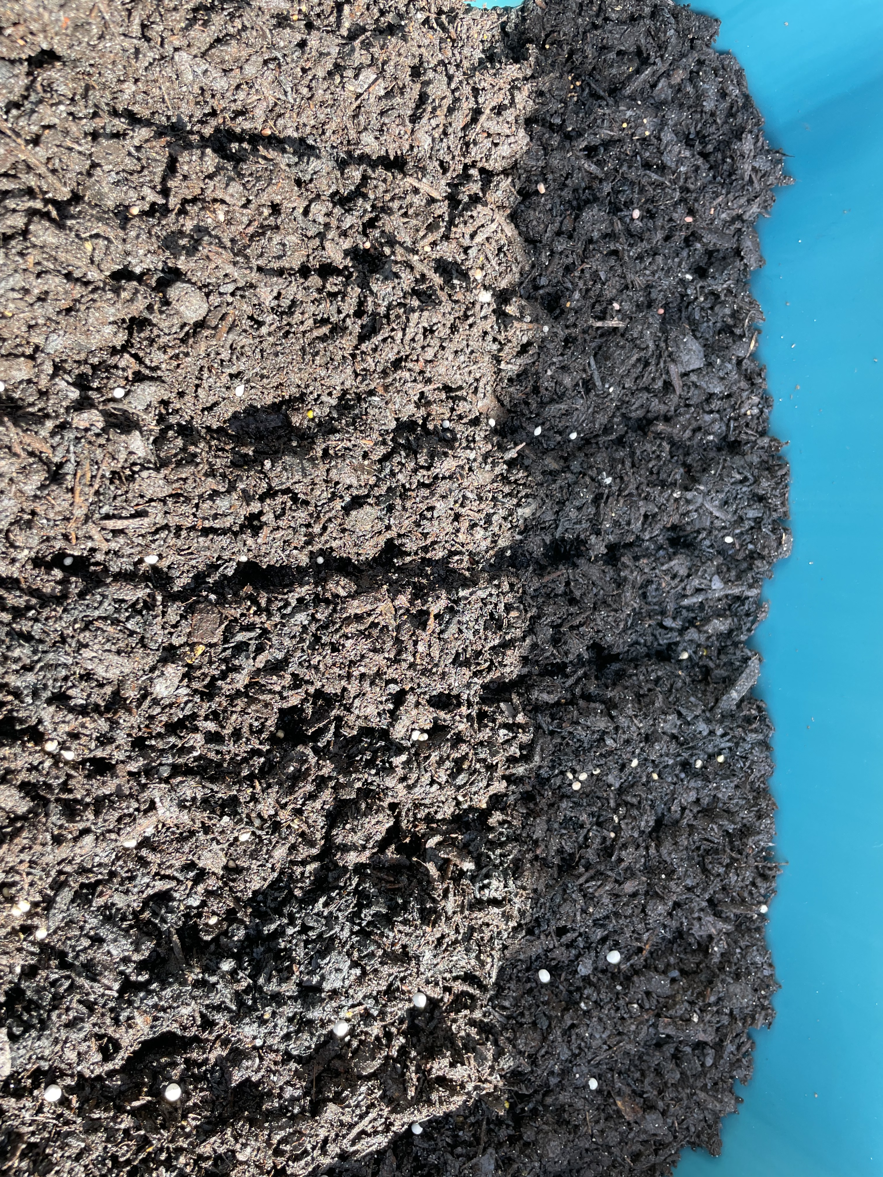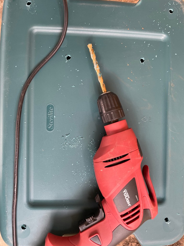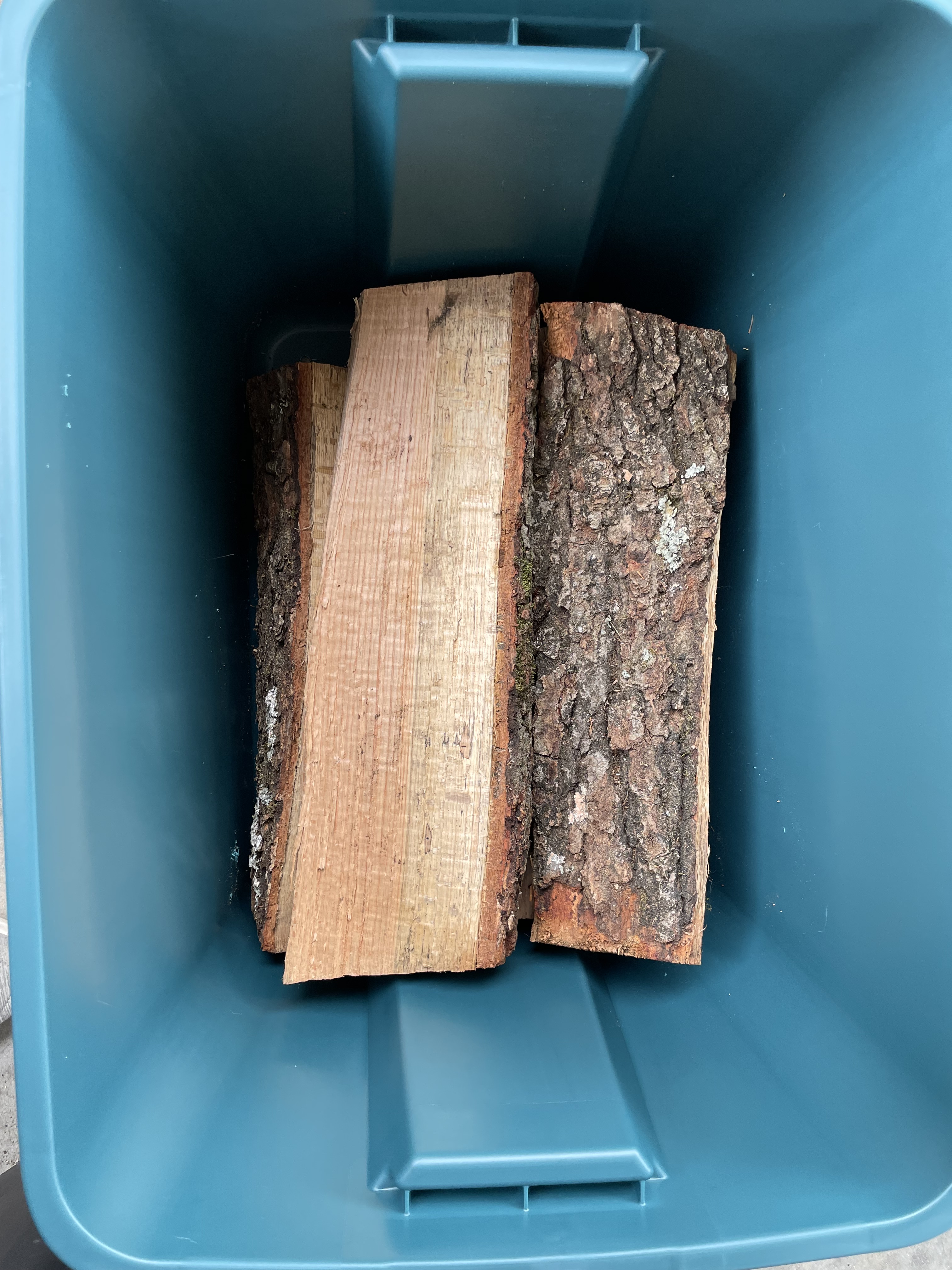 I drilled holes in the bottom for drainage (the most I know how to do when it comes to tools, I’m afraid) and placed them along the fence. I partially filled them with pieces of wood to create a hügelkultur environment where the wood creates drainage whilst holding water in its structure to slowly release, breaks down and feeds the soil, and in this case, helps save on soil by filling up space that the roots do not need. I didn’t put any wood in the bin that I planted potatoes in.