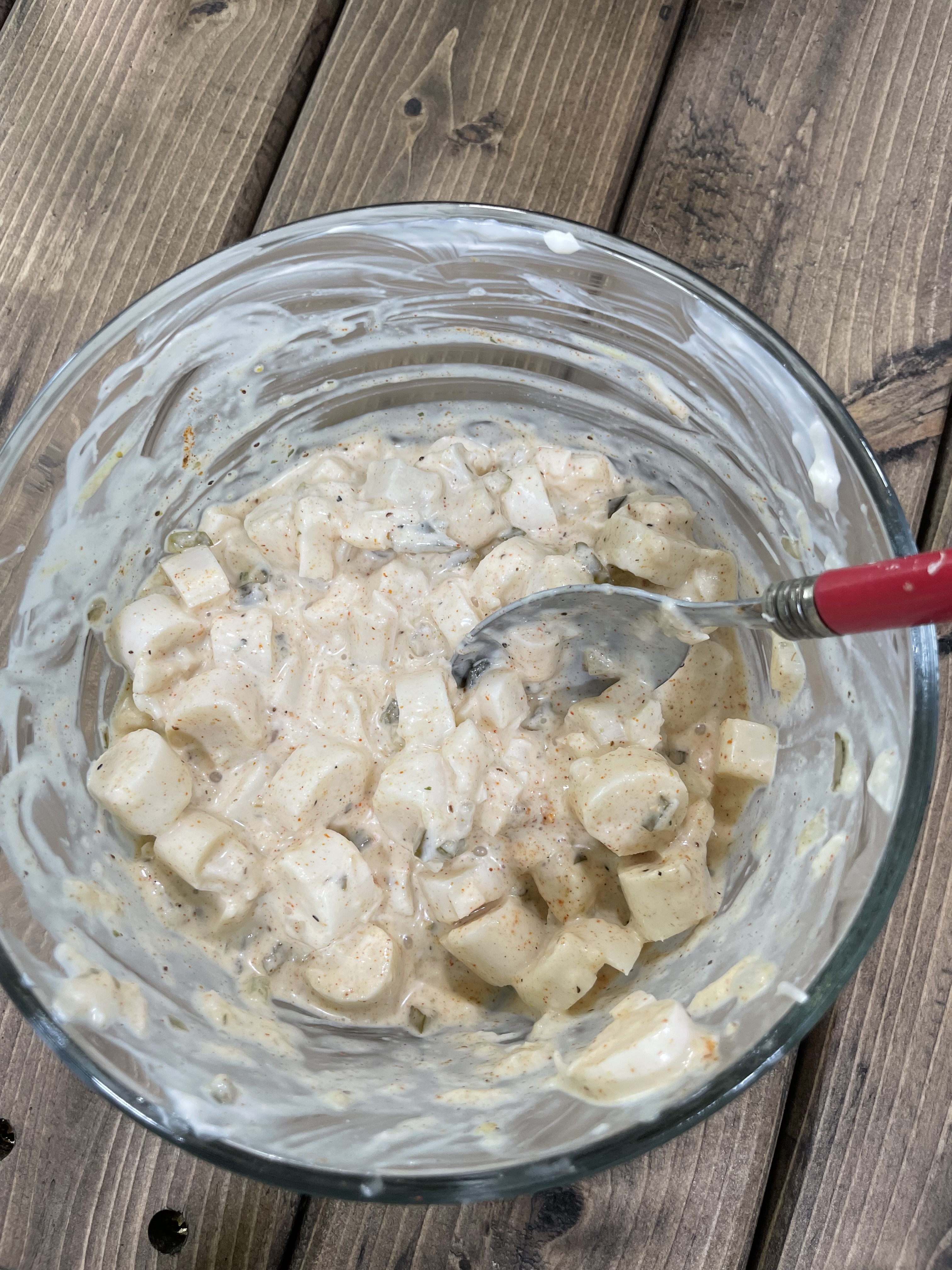 I read a lot of food magazines, funny enough. I use the recipes to dream up vegan versions. I saw a recipe for a seafood salad. Like a crab salad you’d make sandwiches out of. Hearts of palm has a real similar consistency. So, I opened a can, drained it, cut it up, mixed in vegan mayo, a touch of mustard, relish, a heavy hand of Old Bay seasoning and served it up. Delicious. If you have a way to make certain things, just change the animal details to veg. Simple. You don’t have to relearn everything or wonder what the heck you’re going to make if you cut down on meat. It’s easy and fun and delicious and ain’t no body gonna starve!