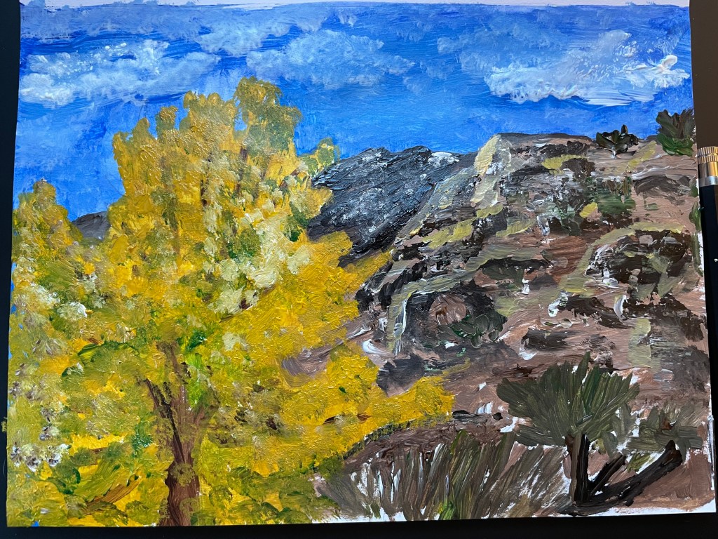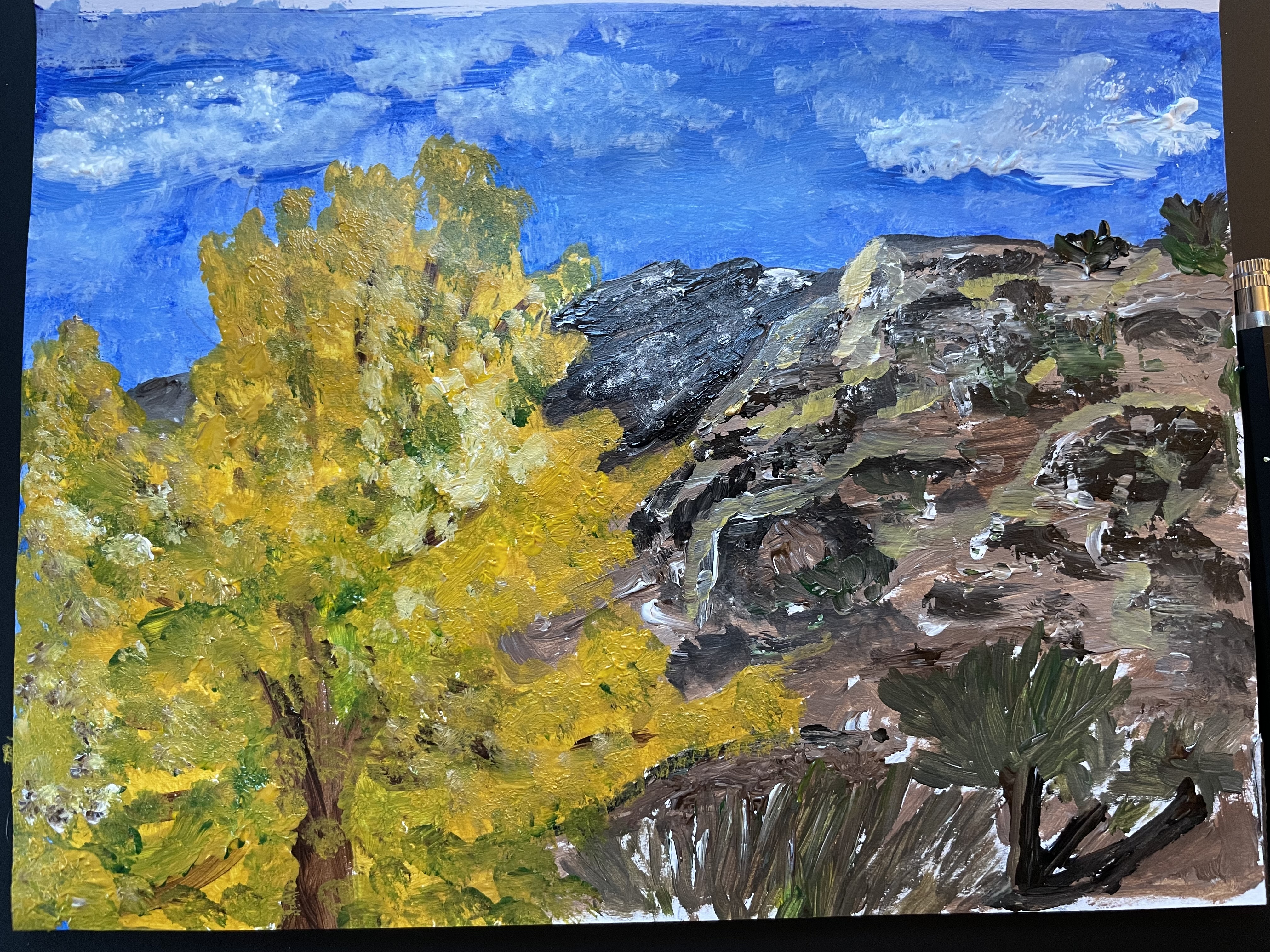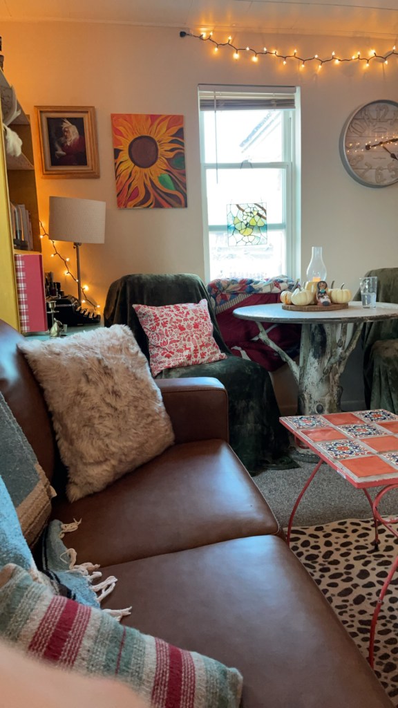 Thank God we’re home! Our little hiatus gave us some much needed realization and rootedness. Everything we could ever want is right here. We bought the cutest little 1910 coal miner’s cottage in the whole world in a sleepy, little Norman Rockwell town called Rockvale. We bought it sight unseen, so you can imagine our utter delight at all the amazing things this place holds. We are surrounded by the Wet Mountains to the south, the San Juans to the west, and the Rocky Mountains to the north. Pikes Peak out the front door with a huge rock face that we hiked yesterday across the street, and the south windows hold the majesty of a mountain range I continue to paint on canvas. I set up my loom and have been weaving. The animals love it here, and we do too. We are minutes away from our youngest daughter and granddaughters and a jaunt down the highway to our grandson and our other two children. We are so grateful. So, so grateful and happy. It’s like this cool high desert air just breathed life right back into us.