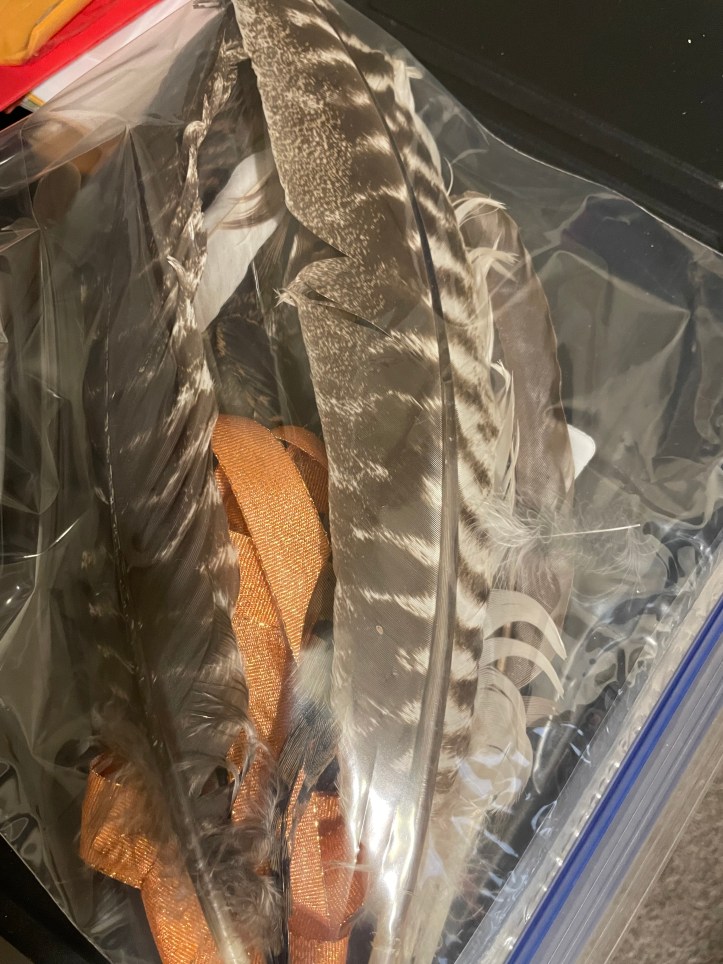 If you are also an avid bird watcher and explorer, you may find a feather here and there. There are a few ways to kill mites on feathers. You could use boric acid, but that is rather toxic to everything, including the mites. You could use diatomaceous earth, but when you are doing ceremony, you will be spraying everyone with powder. My favorite way is to put them in the freezer. If you see any shaved off looking rigid edges on your feathers, you can be sure something is munching them. Put them in a resealable freezer bag and pop in them in the freezer. This works to protect old fur and moths trying to get into wool. My poor husband can’t even find the ice trays for the piles of feathers and such in the freezer.