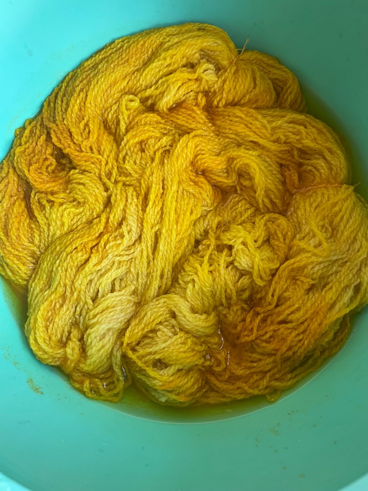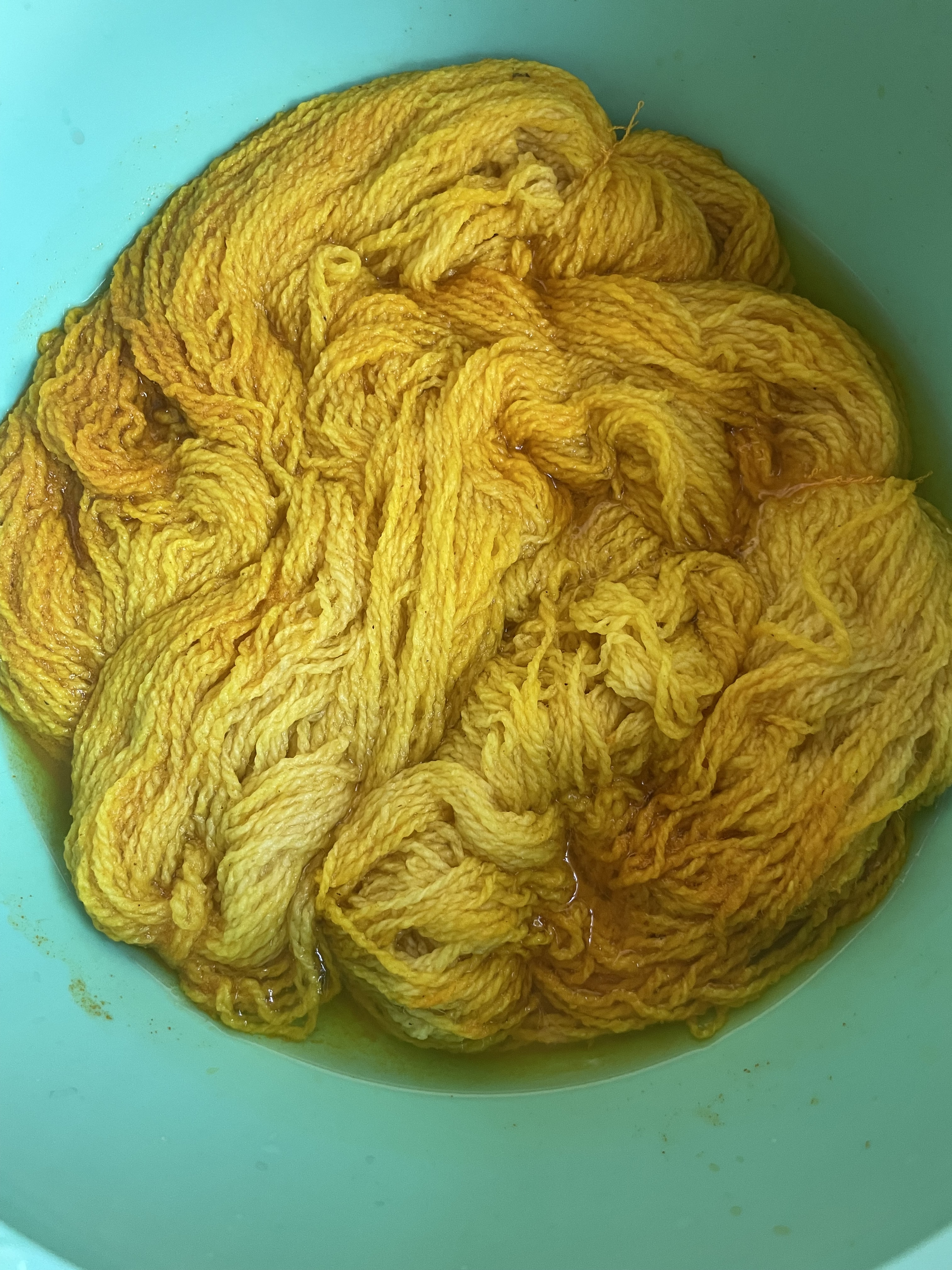 Wallah! Easy turmeric dyed yarn. I also dyed a wash cloth and part of the kitchen on accident! Good thing I like yellow!