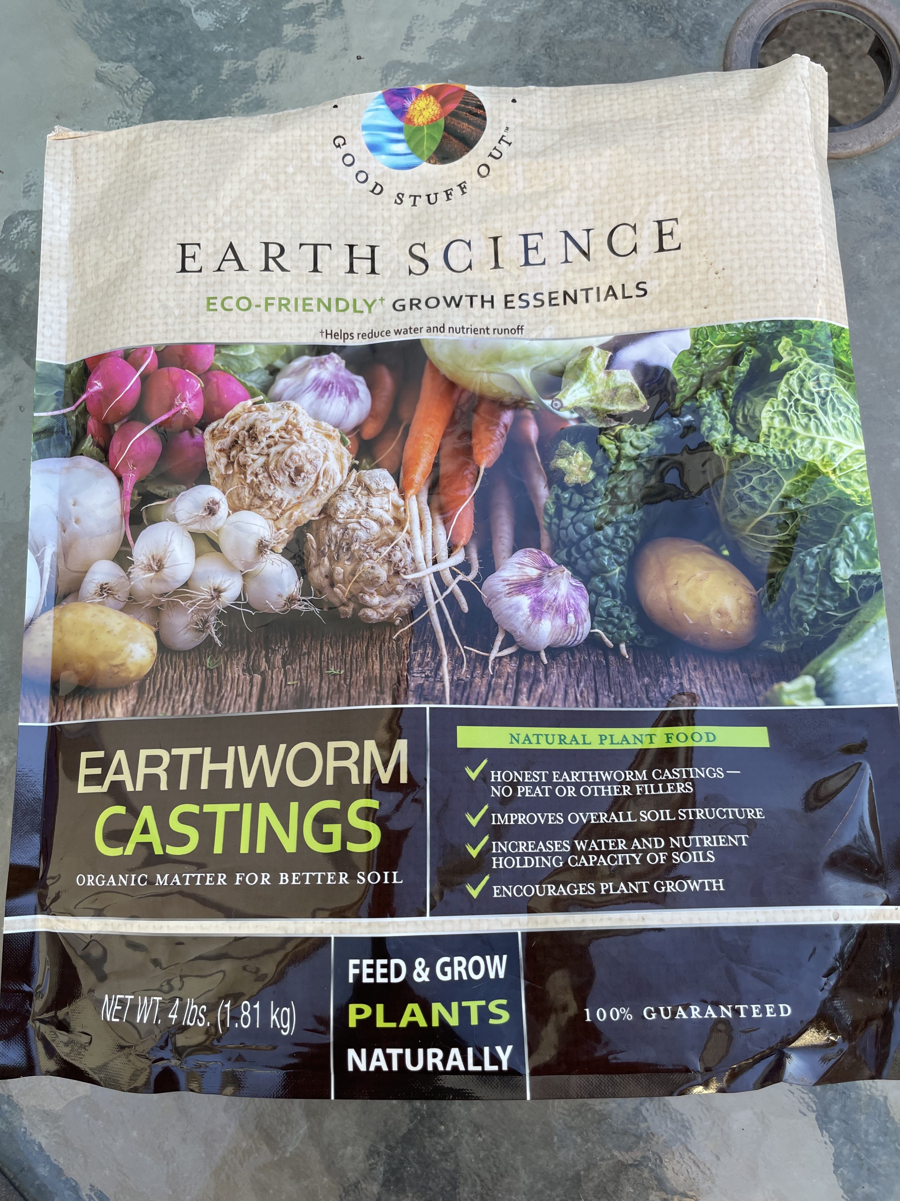 Instead of using chemical fertilizers and weed killers, you simply pull the weeds and lay them down to act as mulch. For fertilizer, use diluted coffee and grounds, compost, homemade seaweed tea (click here for recipe), and worm castings. You can buy a bag of worm castings for $10 at Walmart if you do not have a vermiculture area. (I do not, but I want to learn and you can bet it will be on this blog!) Right now, I am putting a handful at the base of any surviving plant. I will sprinkle it into the soil too. Worm castings is worm poo, if you will, and it’s amped up with natural nutrients the soil loves.