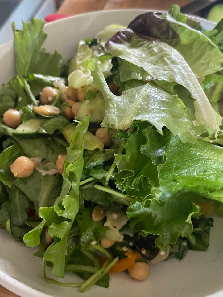 My friend, Annie, came over with her infant daughter and kept me company the whole day. She brought me lunch and prepared a beautiful salad while I filled jars.