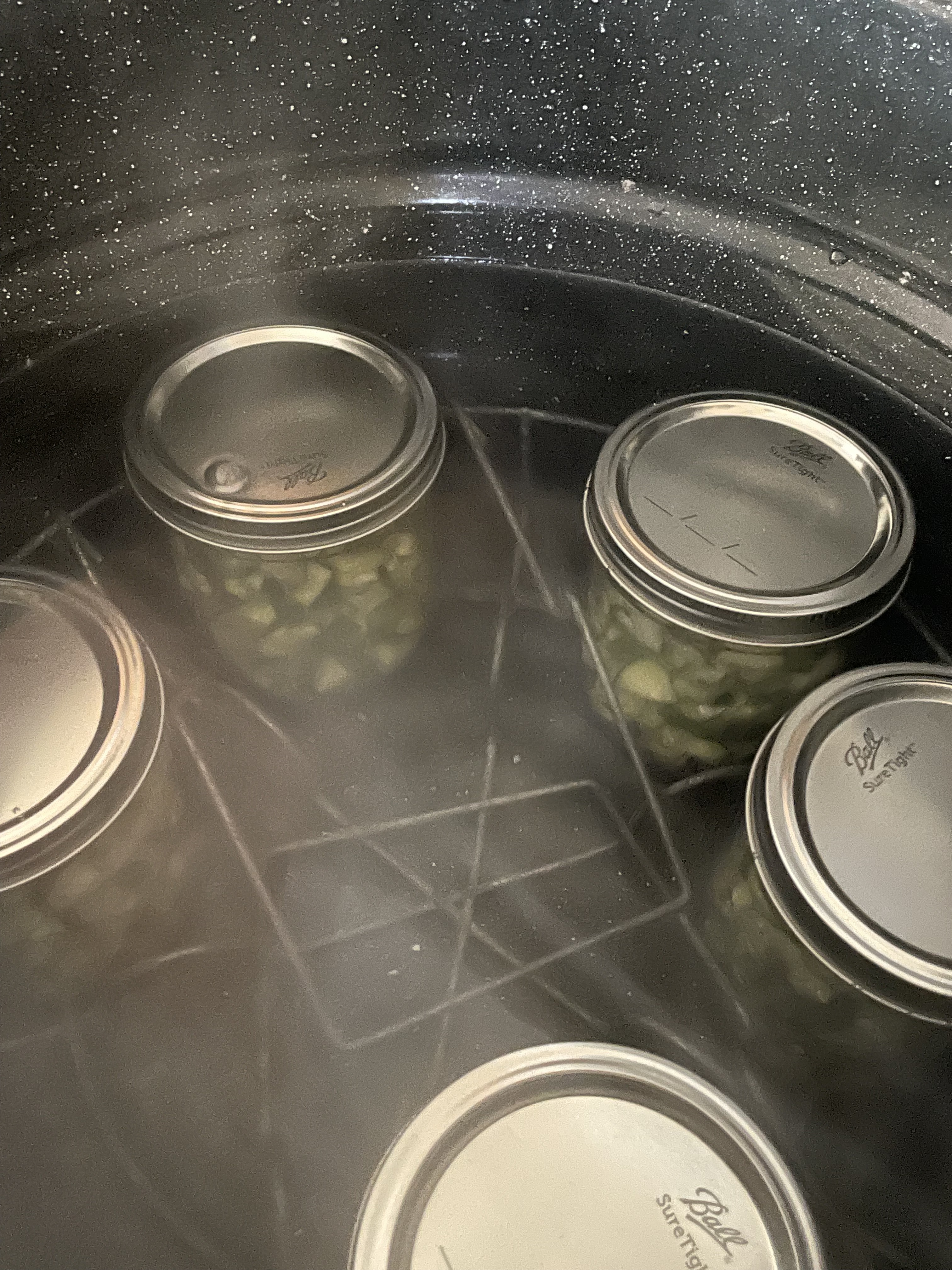I made 19 jars of vegetable broth, 5 jars of pickle relish, and 5 jars of green beans. I plan on canning each week for the duration of the season. There is nothing like opening a can of something delicious in the winter from one’s cellar stores.