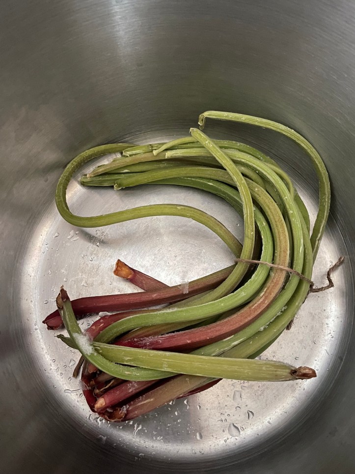 Some of the best things come from mistakes. Yesterday, I set out to can juice. I had bought a bundle of rhubarb from the farmer’s market, but it is a little late for rhubarb and I could tell it was going to be stringy when I got home. I had bought two quarts of organic strawberries on sale at the grocery store. I decided to can rhubarb-strawberry juice. Then I thought of adding lemon juice and making it lemonade sounded fun. I boiled the rhubarb for about a half hour in 6 cups of water. I blended the strawberries in the Vitamix with three cups of water until well blended and added that to the rhubarb. A pinch of salt and three cups of sugar (1/2 organic white, 1/2 organic brown sugar). I simmered the mixture until the sugar was dissolved and the mixture was hot. I wanted to make sure that I had enough acid for the canning process, so I added 1 cup of lemon juice and 1 1/4 cups of lime juice (bottled). (You could use all lemon juice, I just ran out!) This made a delicious tasting…not juice.