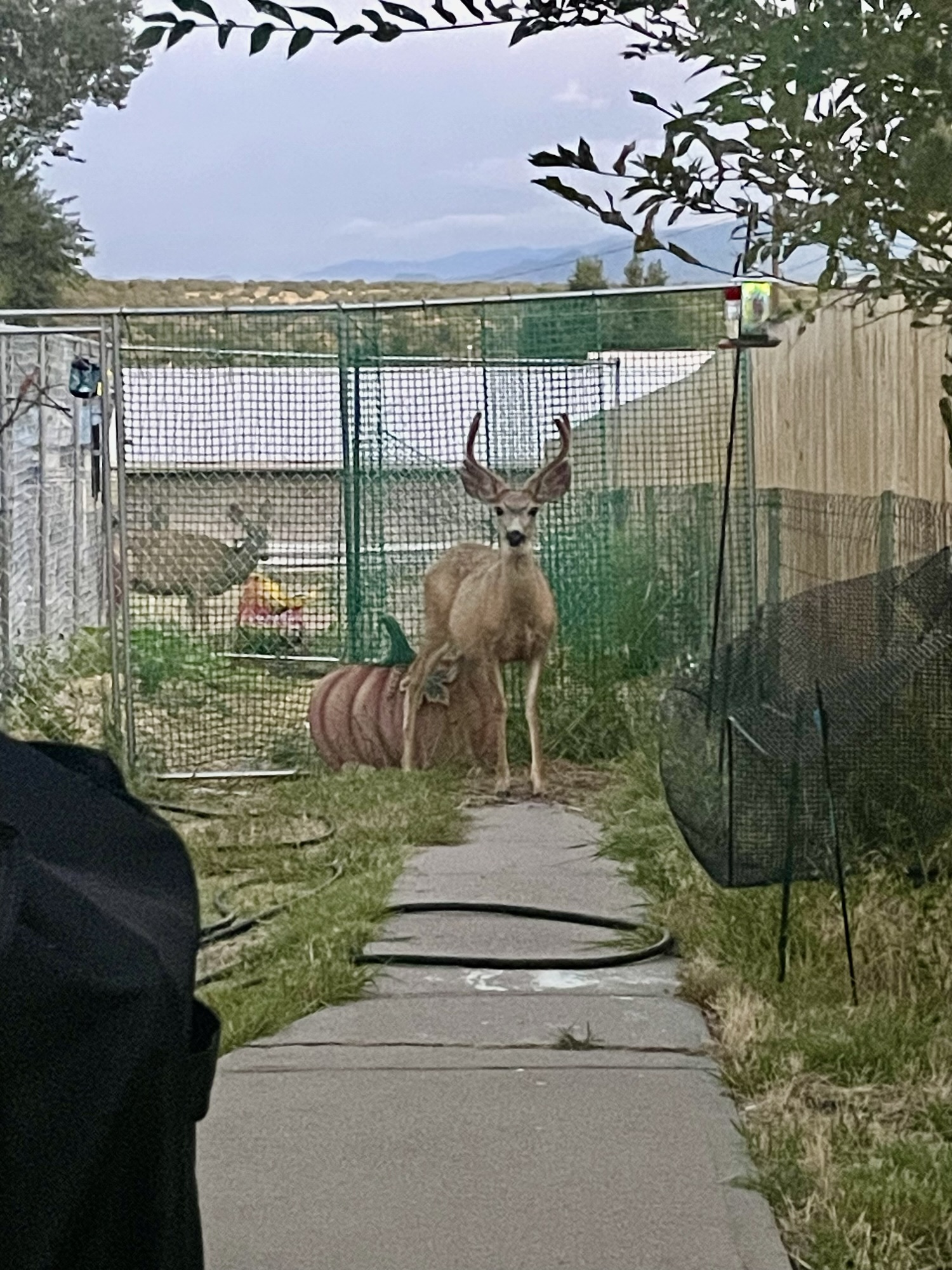 Usually folks are trying to keep deer out of the garden, but I’ve put out the welcome mat and set up a camera to take pictures. I am so thoroughly in love with wildlife. Part of creating an oasis in the middle of wherever you are is accepting that all kinds will make their way there. My gardens are safely tucked away behind dog kennel fencing and chicken wire cages, so I don’t have to worry. The long grasses and the bowl of water is all theirs. Biodiversity is the key to a successful ecosystem.