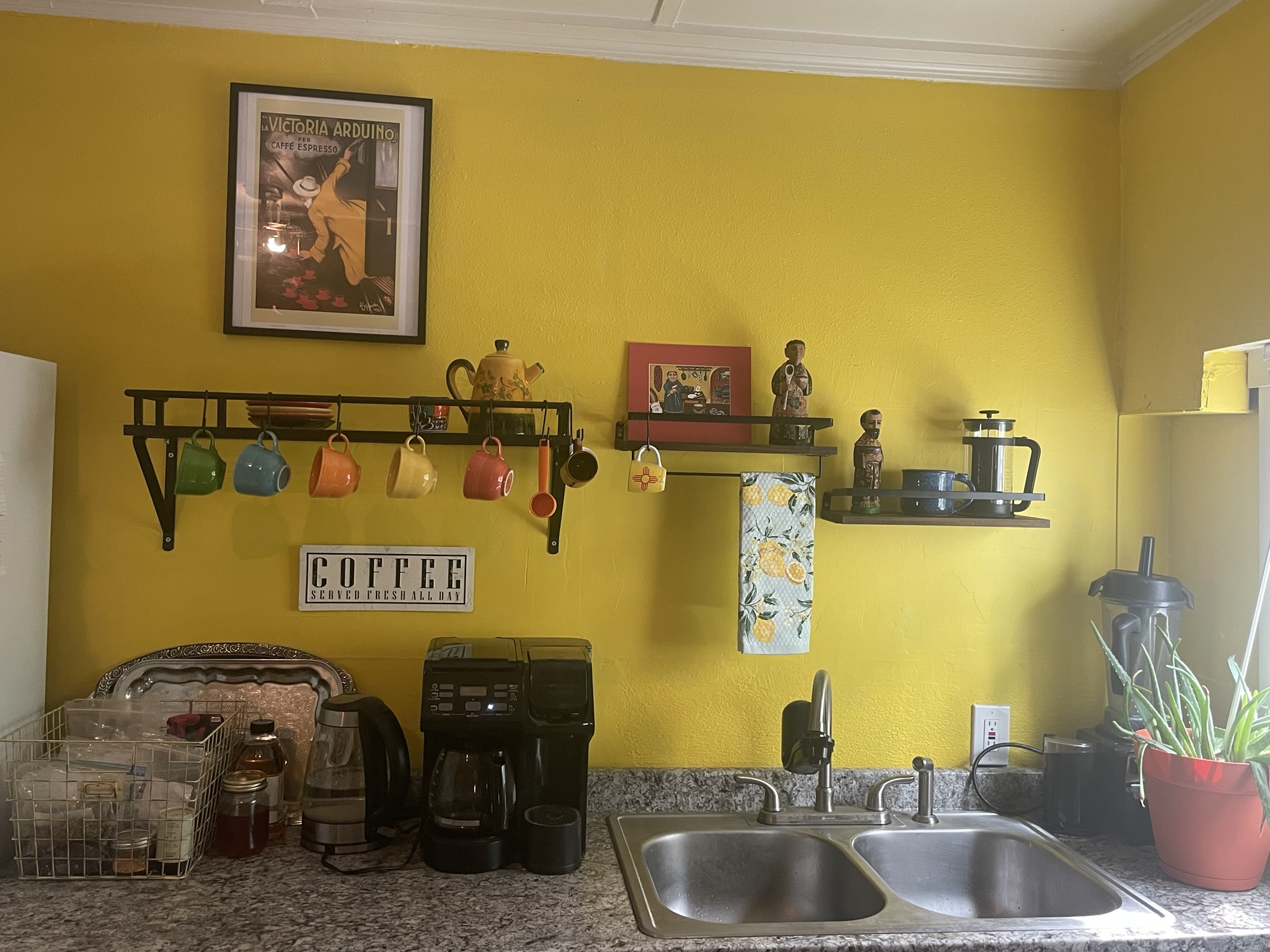 I’ve often touted the power of paint. With a relatively small amount of money, paint is just the right thing to do to transform a room. I have a great passion for decorating. Antiques and thrift store finds, along with items picked up over the years, and a lovely layer of paint add charm and story telling to our home. Add a few cats and twinkly lights, and you’ve got yourself a magazine worthy home! Welcome to my New Mexican inspired farmhouse kitchen.
