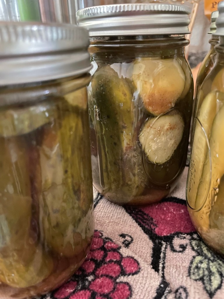 Then to the 1800’s homestead where we had a washer and clothes line and cooked on a wood cookstove. We had farm animals and rows of colorful jars of produce put up.