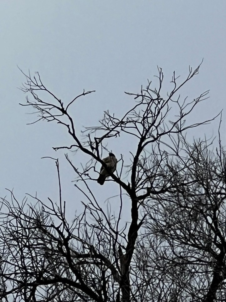 We pulled out binoculars to gaze at a fluffy Red Tailed Hawk perched high up watching the world, the breeze ruffling her gorgeous feathers. The bird app on my phone found a bird not common around this area, Bushtits. We laughed juvenilely at the name then stared in a trance at dozens of the tiny things bursting through branches in lively dance, flitting from here to there, so quick we could not catch them in the binoculars. Their small grey bodies blending into the black and white scene, their song so joyful for the new day of a new year. My love warm at my side as we counted birds and walked silently through paths of golden weeds and far off trees and the sound of the river and Canada Geese squawking overhead.