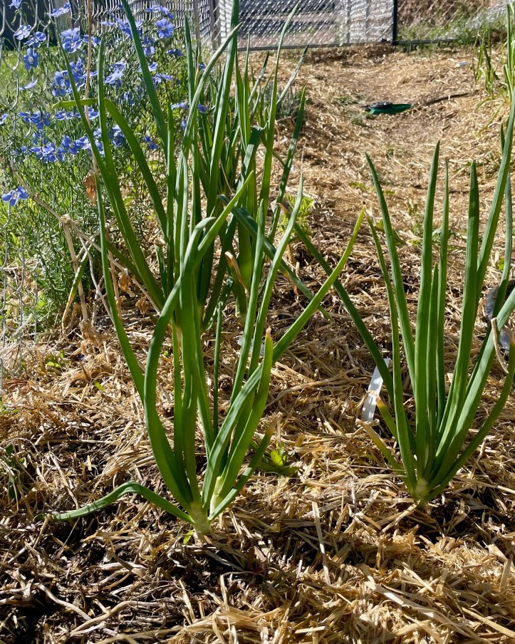 I always have loads of onions and their greens. Throughout the winter, I purchase organic green onions from the grocery store. They will stay in a glass of water for months as I clip greens for freshness to put in our meals. When they start to get very weary and half dead, I plant them in the garden, no matter the month. They begin to really take off in the spring and the seeds replant themselves and I really have nothing to do but cheer them on and water them each day!