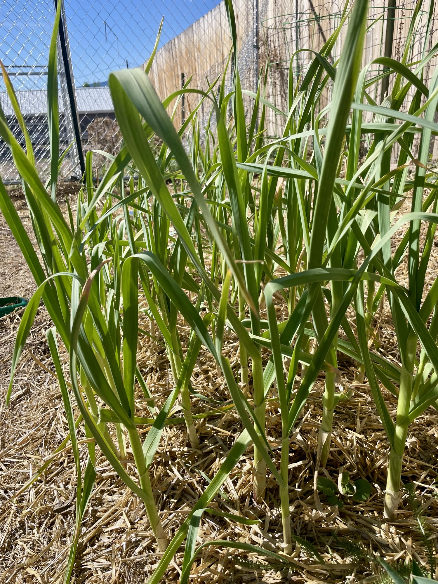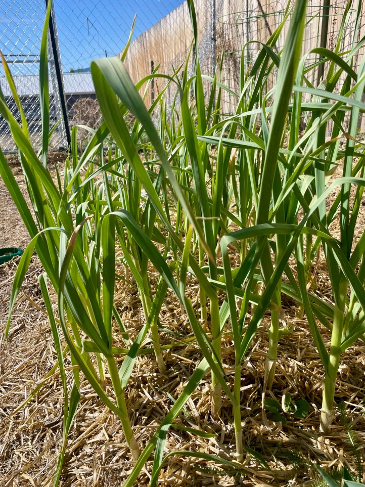 Garlic bulbs are just desperate to grow right now. Grab an organic bulb from the store, break off all of the cloves and plant each one individually. I do this in April and in October. We like garlic around here.