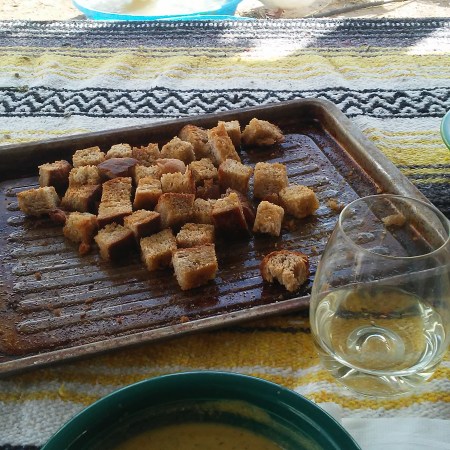 Spring Pea Soup with Garlic Croutons and Rhubarb Custard (two super fast and easy recipes!)